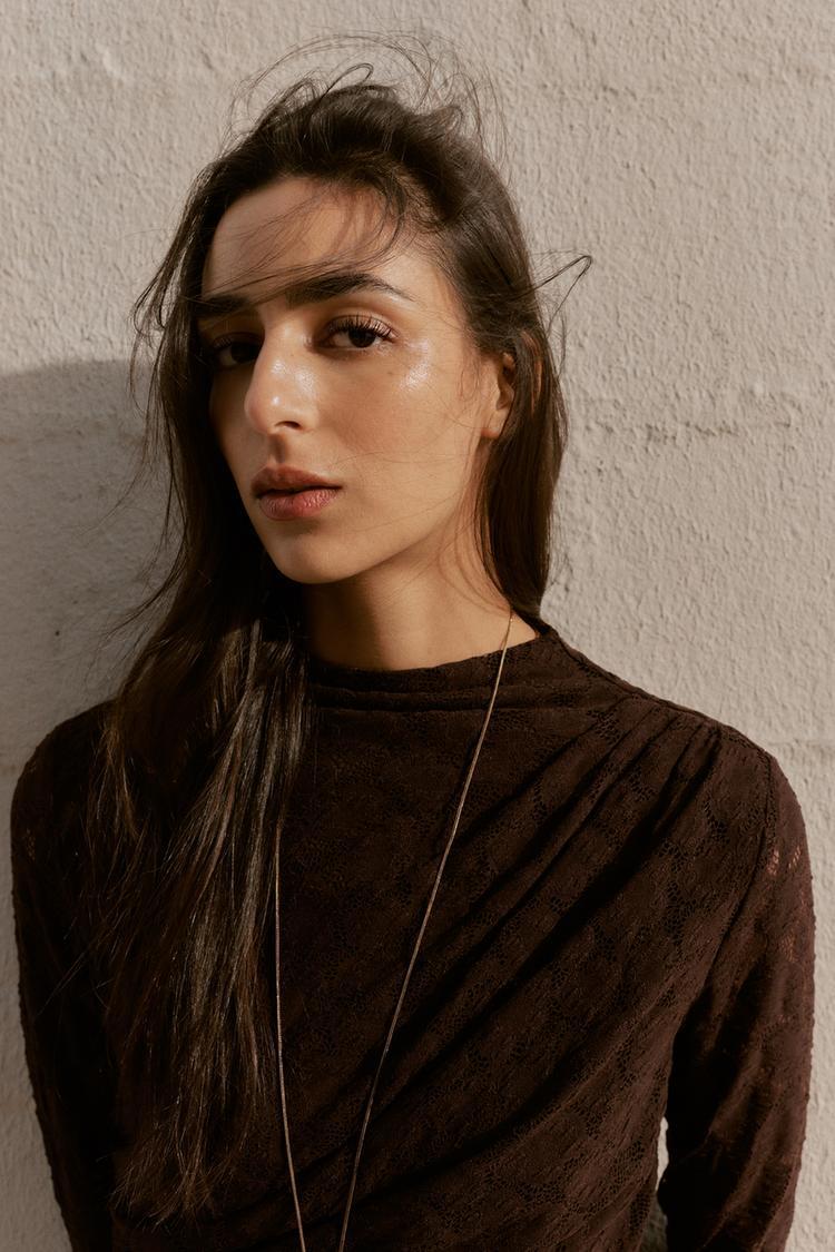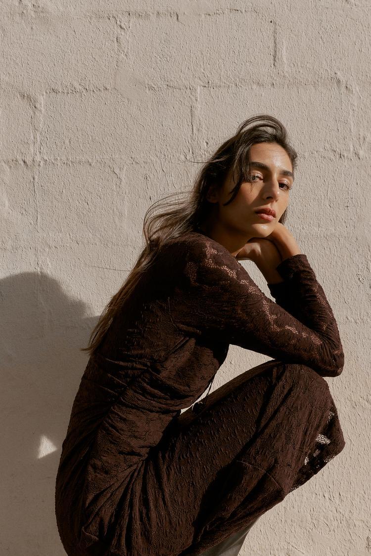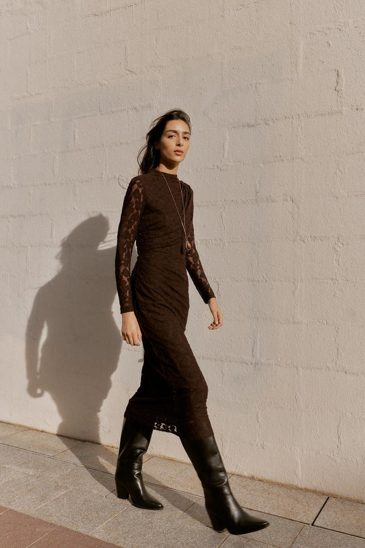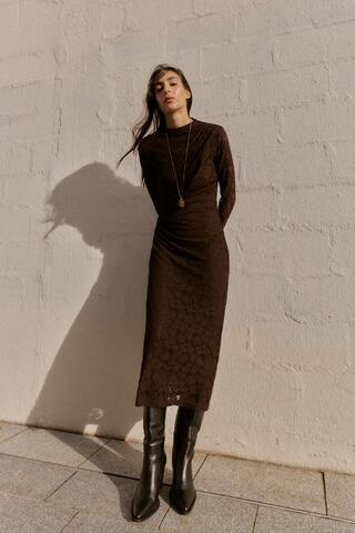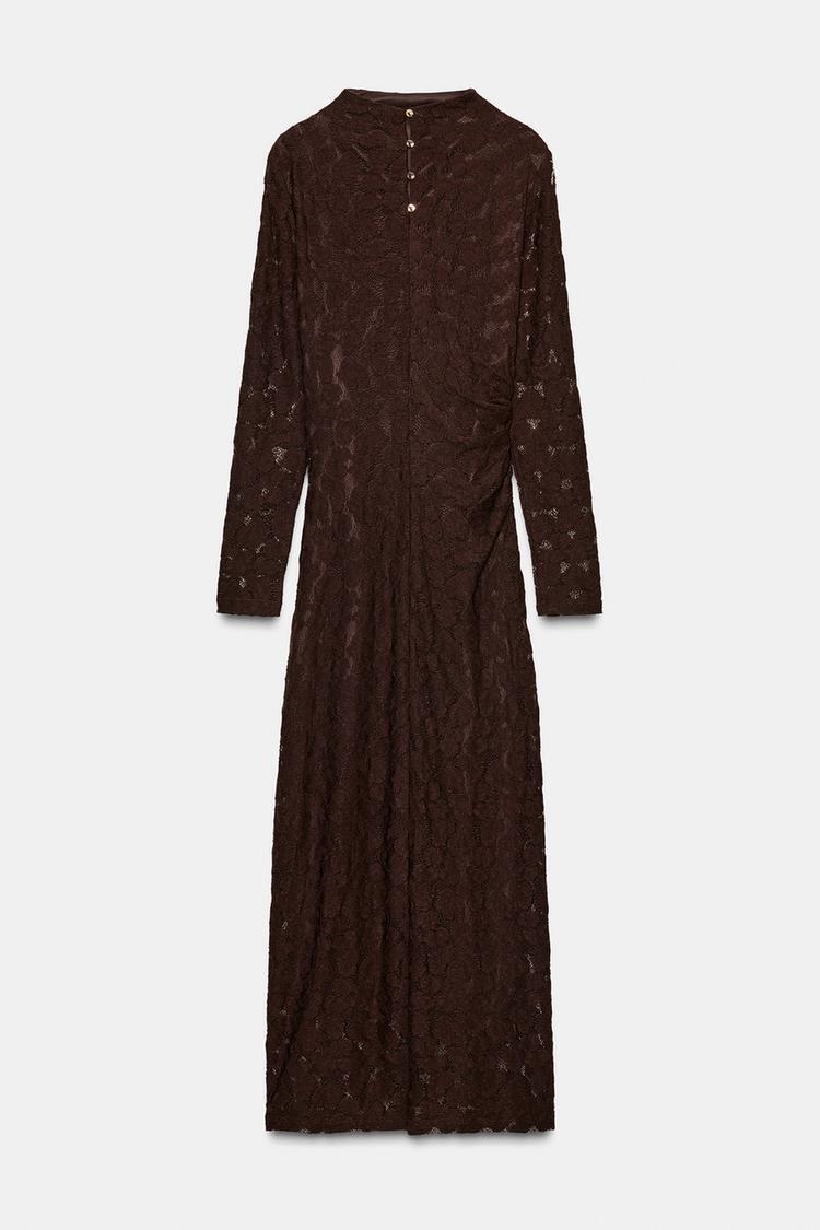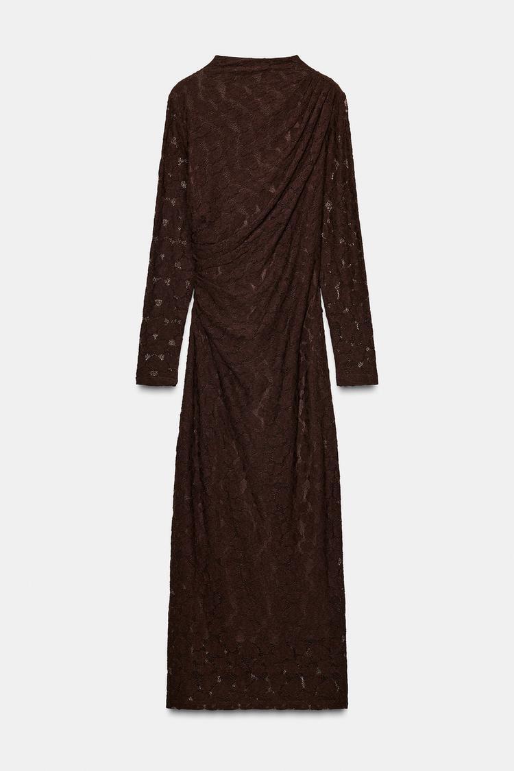 ZARA ПЛАТЬЕ МИДИ С ПЕРФОРАЦИЕЙ И ДРАПИРОВКОЙ, КОРИЧНЕВЫЙ