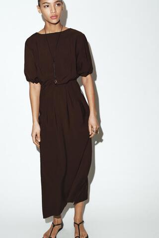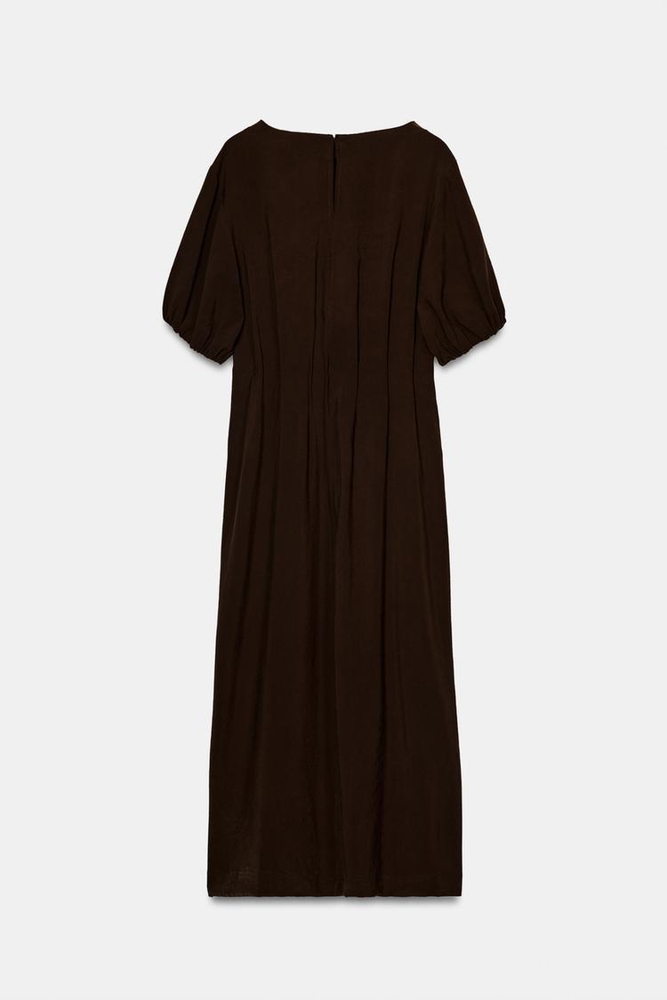 ZARA ПЛАТЬЕ МИДИ С ПЛИССИРОВКОЙ, ШОКОЛАДНЫЙ