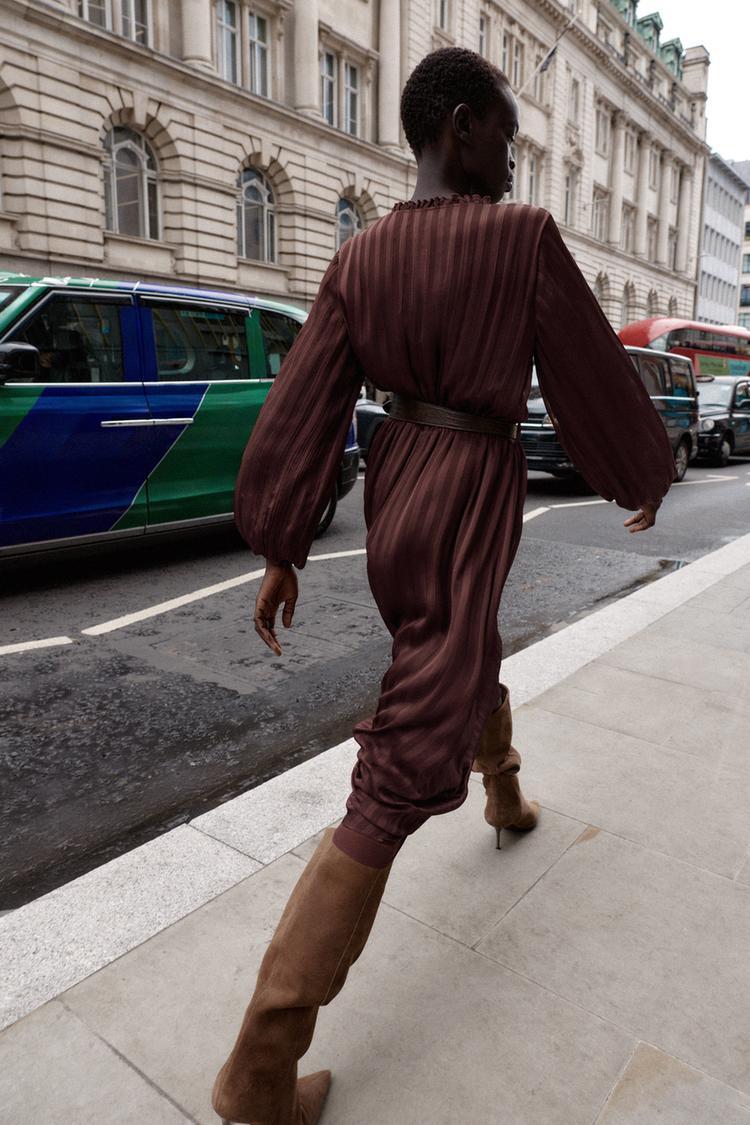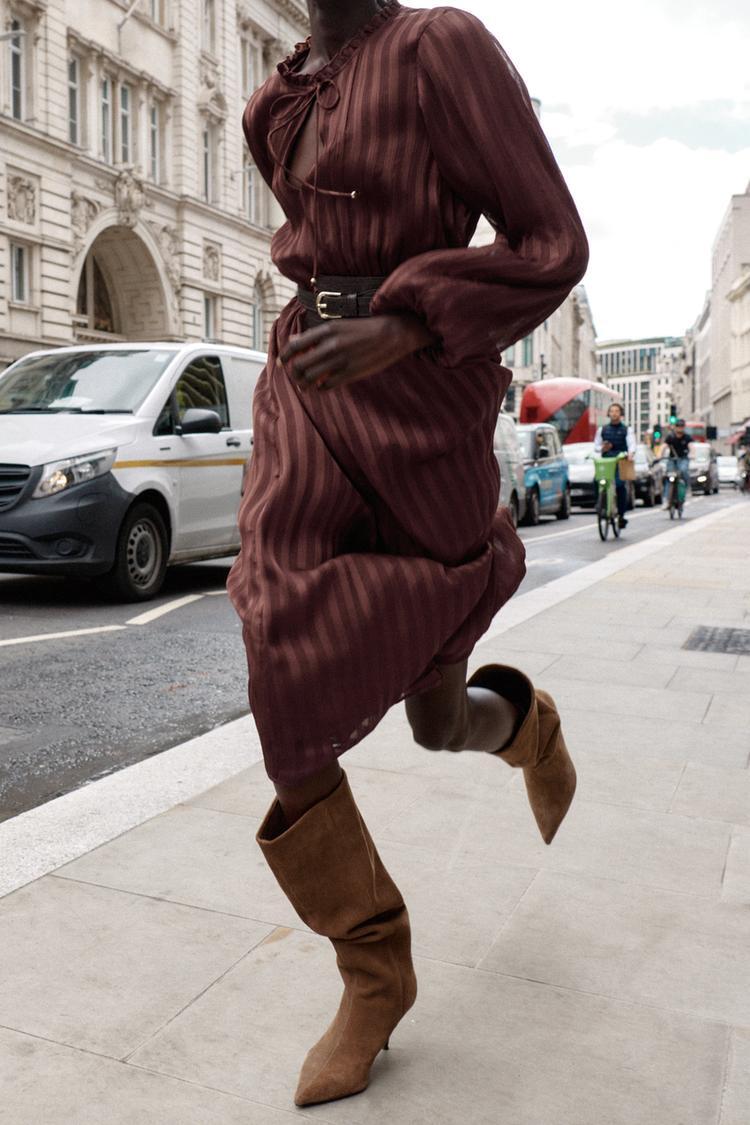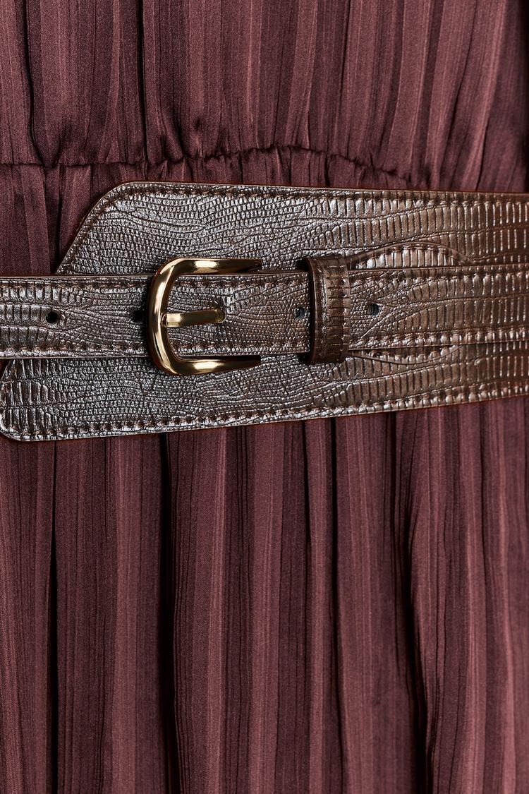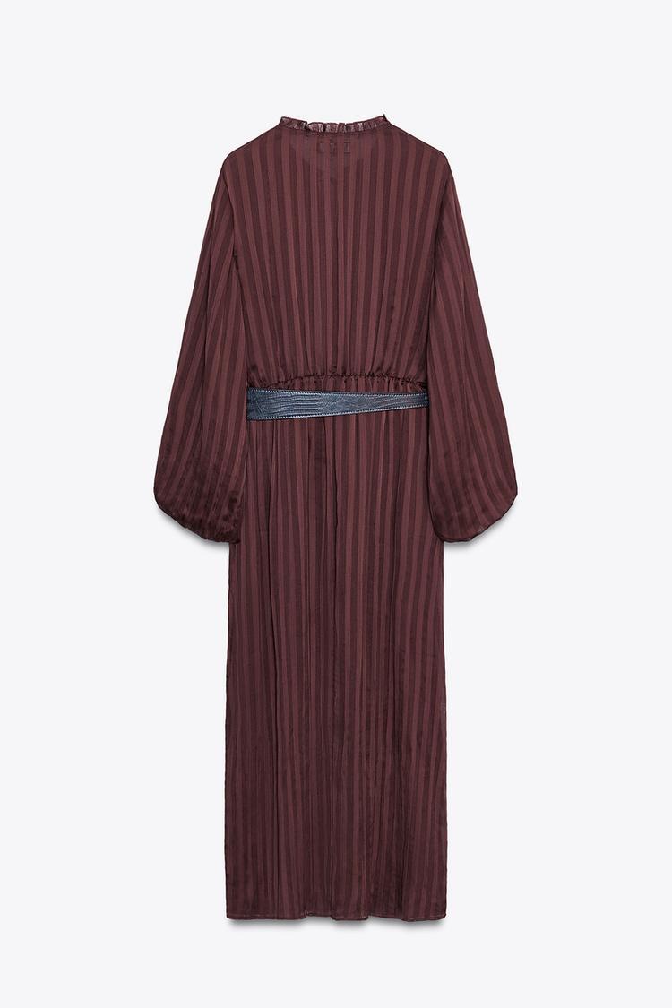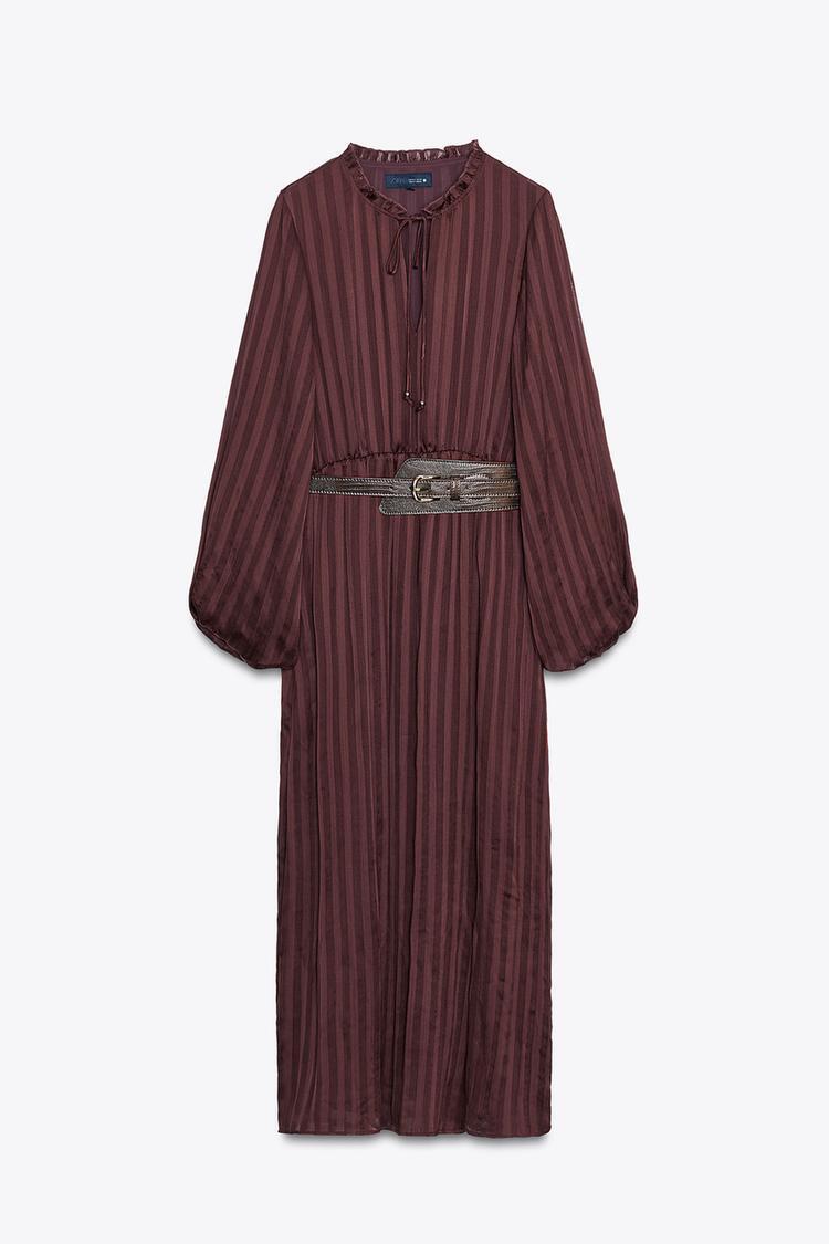ZARA ПЛАТЬЕ-МИДИ С ПОЯСОМ, ЧЕРЕПИЧНЫЙ