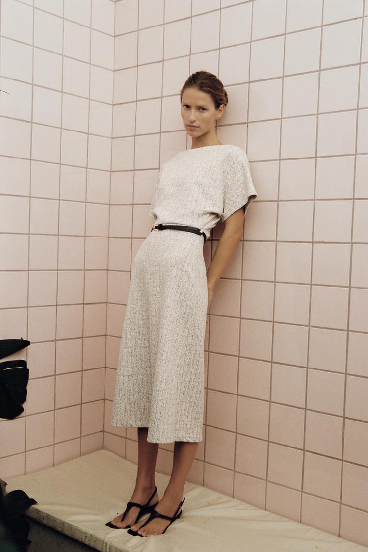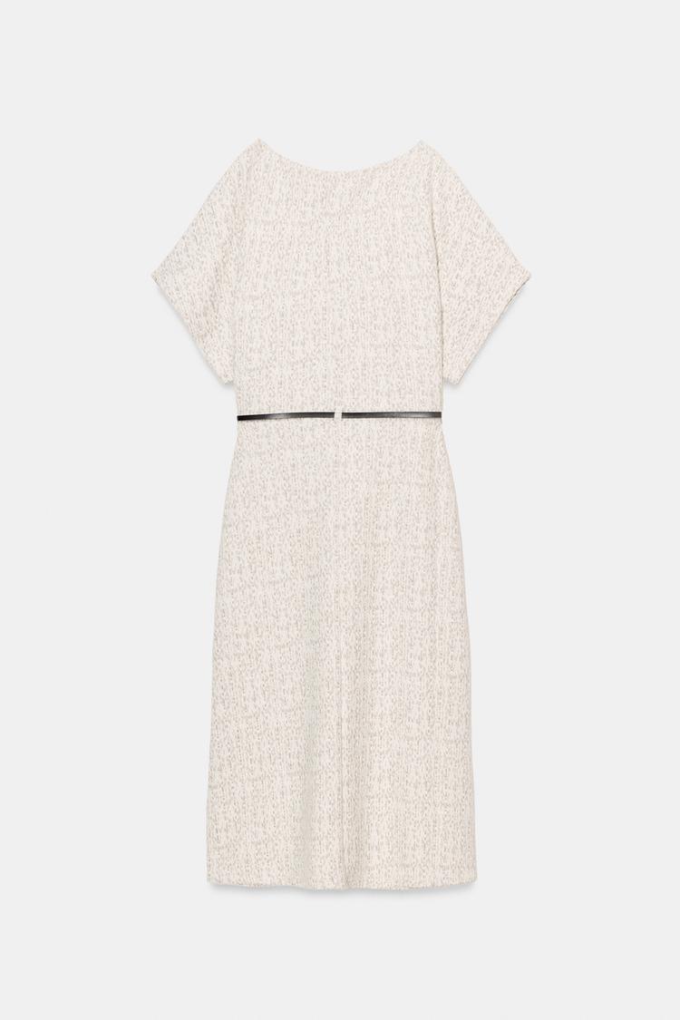 ZARA ПЛАТЬЕ МИДИ С ПОЯСОМ, ЭКРЮ/БЕЖЕВЫЙ