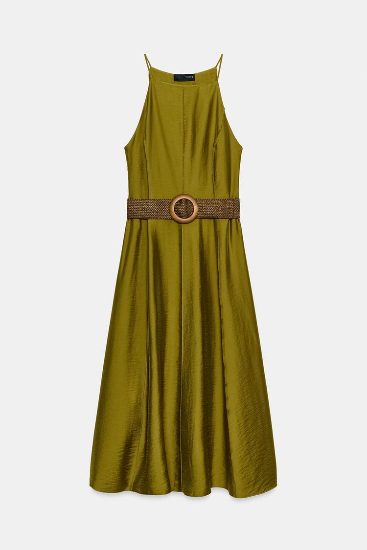 ZARA ПЛАТЬЕ МИДИ С ПОЯСОМ, ХАКИ