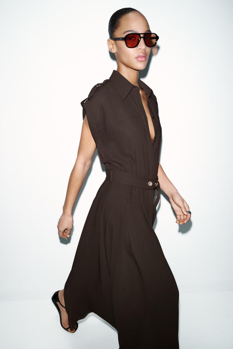 ZARA ПЛАТЬЕ МИДИ С ПОЯСОМ, КОРИЧНЕВЫЙ