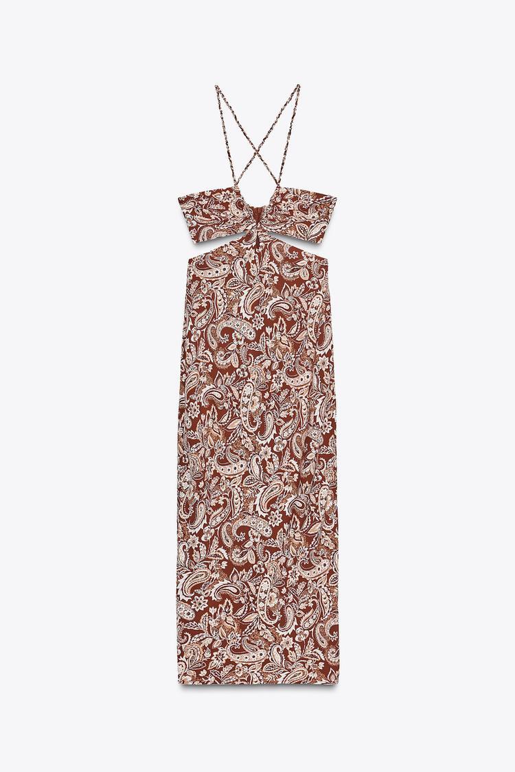 ZARA ПЛАТЬЕ МИДИ С ПРИНТОМ И ВЫРЕЗАМИ, ТЕРРАКОТОВЫЙ