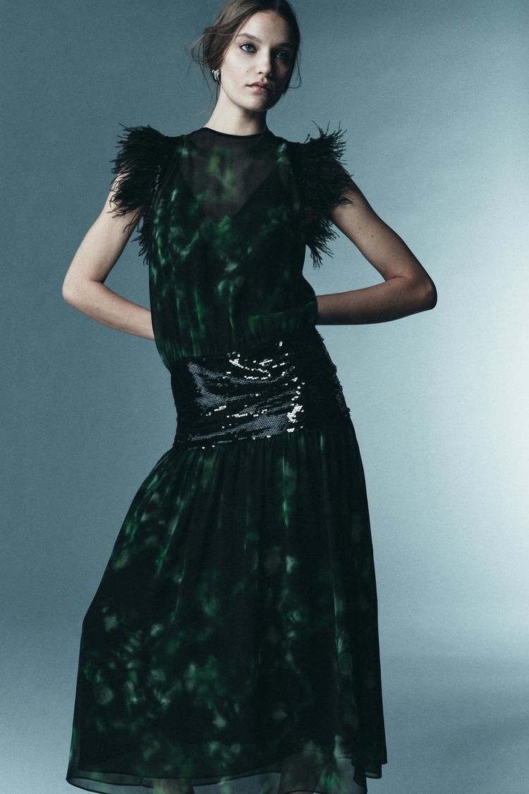 ZARA ПЛАТЬЕ МИДИ С ПРИНТОМ, РАЗНОЦВЕТНЫЙ