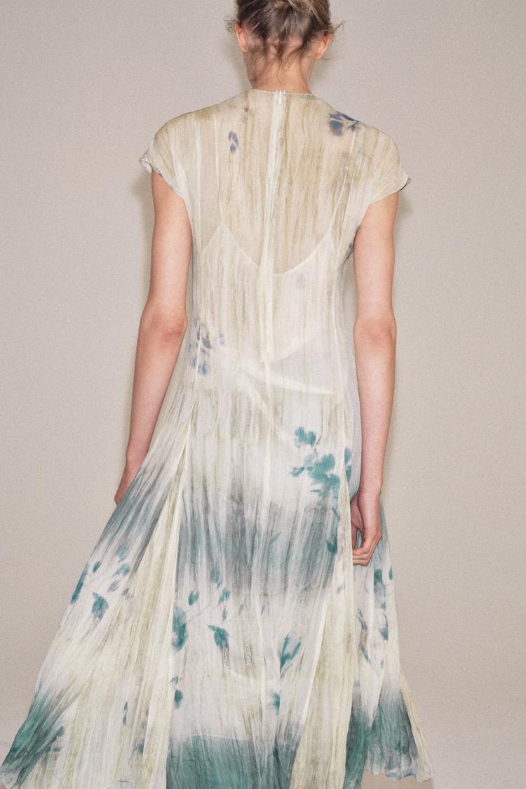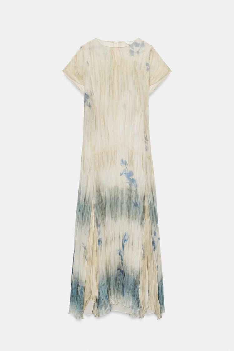 ZARA ПЛАТЬЕ МИДИ С ПРИНТОМ — ZW COLLECTION, ЭКРЮ/СИНИЙ