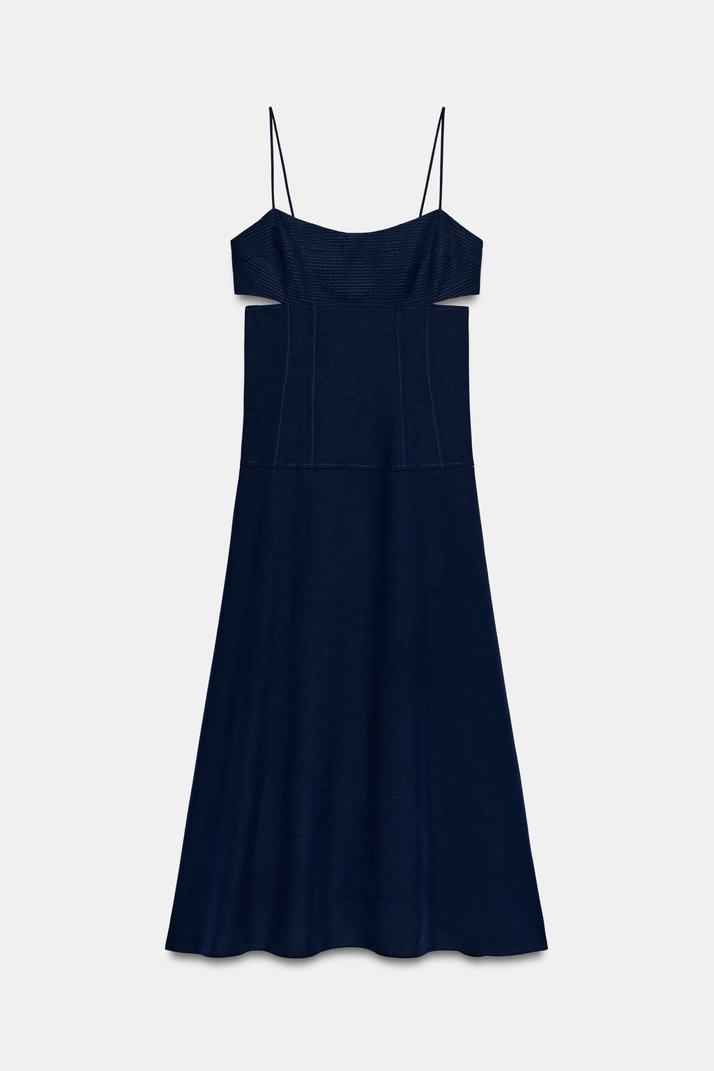 ZARA ПЛАТЬЕ МИДИ С ВЫРЕЗАМИ, ЧЕРНИЛЬНО-СИНИЙ