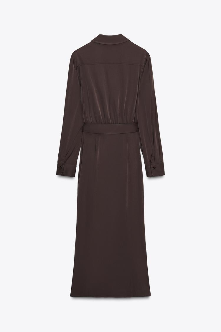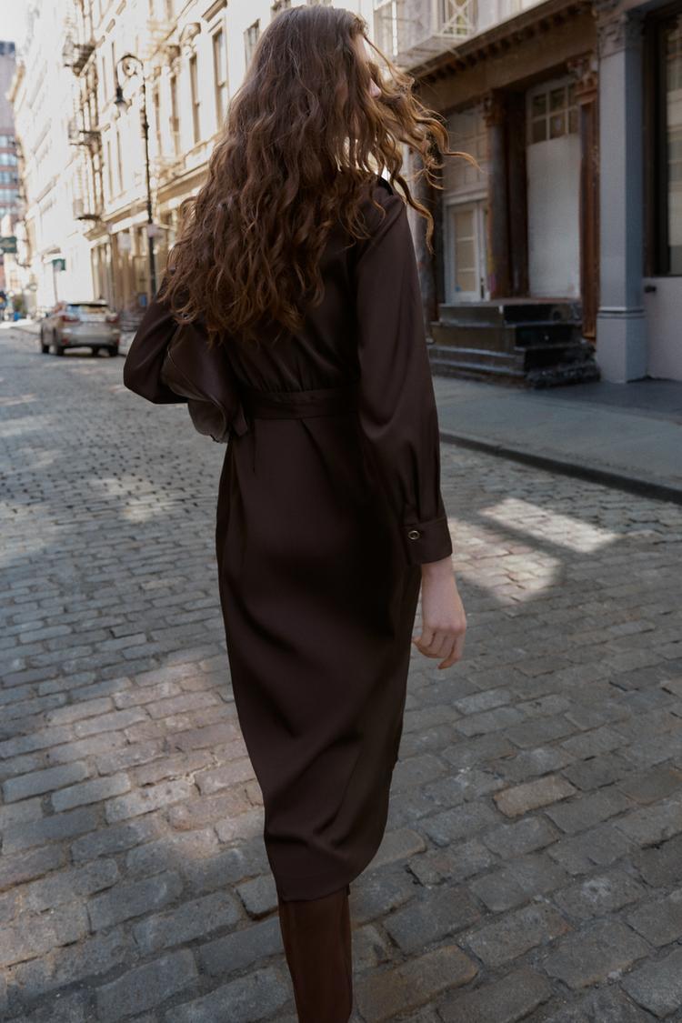 ZARA ПЛАТЬЕ МИДИ С ЗАПАХОМ И ПОЯСОМ, КОРИЧНЕВЫЙ