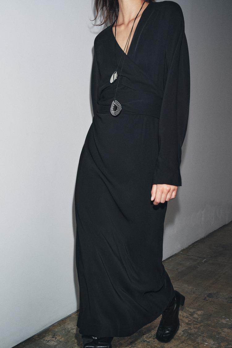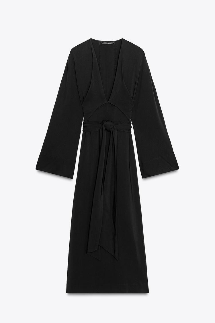 ZARA ПЛАТЬЕ МИДИ С ЗАВЯЗКАМИ — ZW COLLECTION, ЧЕРНЫЙ