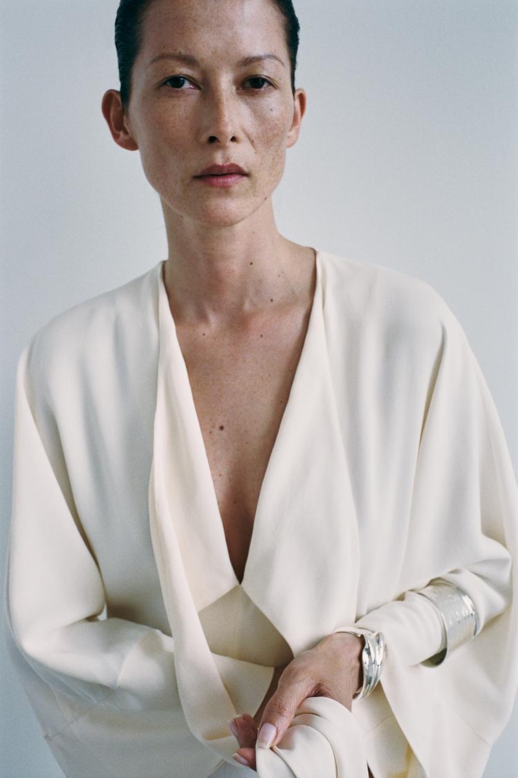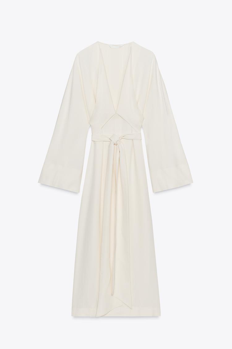 ZARA ПЛАТЬЕ МИДИ С ЗАВЯЗКАМИ — ZW COLLECTION, ЭКРЮ