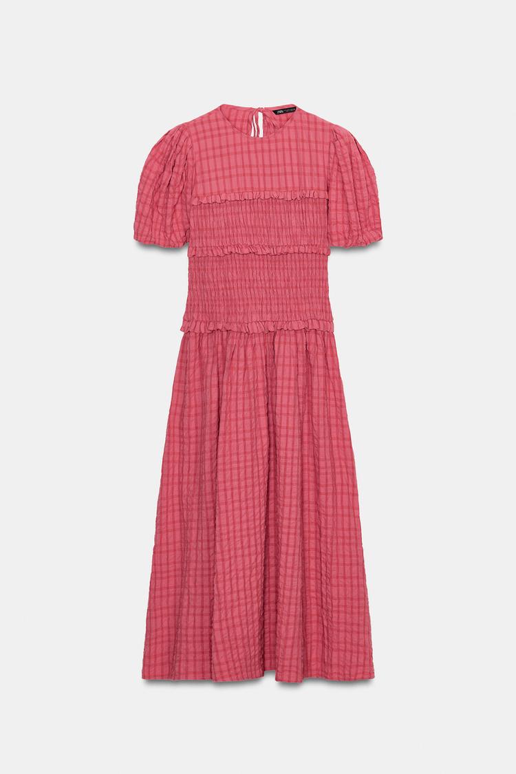 ZARA ПЛАТЬЕ МИДИ С ЖАТКОЙ, РОЗОВЫЙ