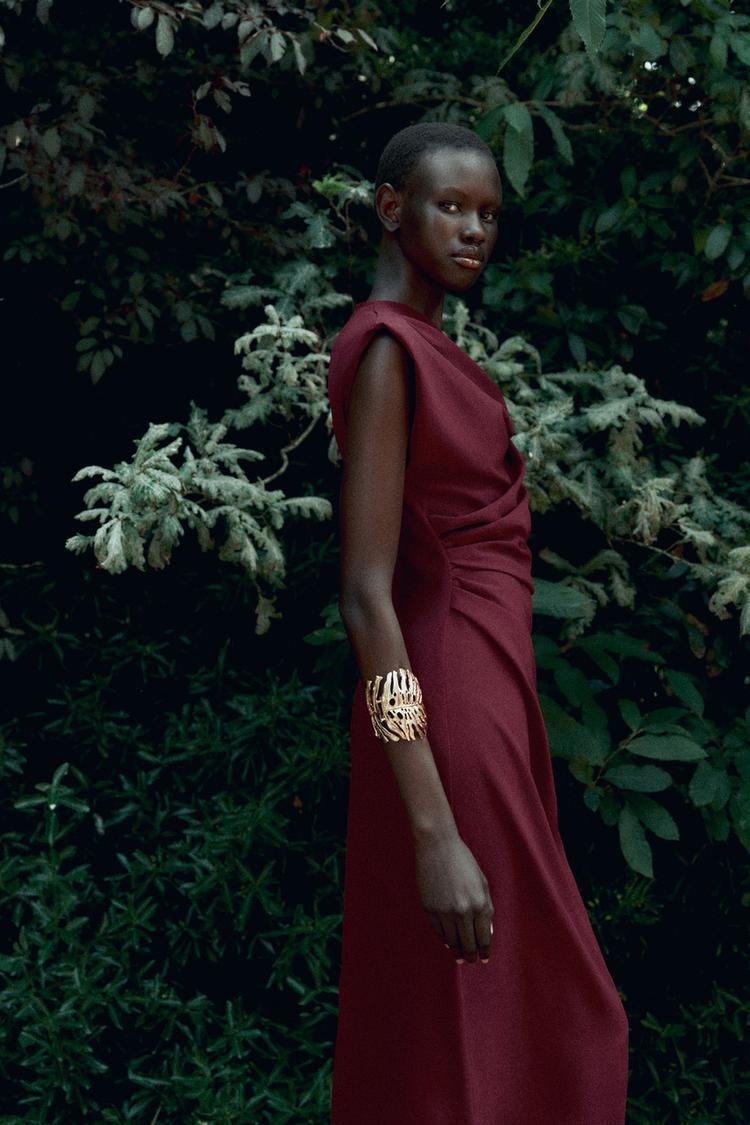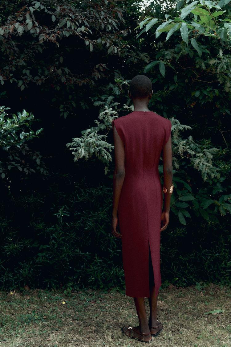 ZARA ПЛАТЬЕ МИДИ С ЗОЛОТИСТОЙ ДЕТАЛЬЮ, МАЛИНОВЫЙ
