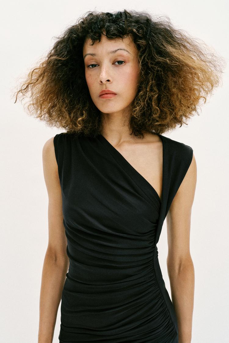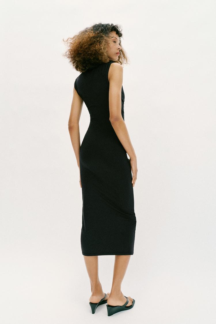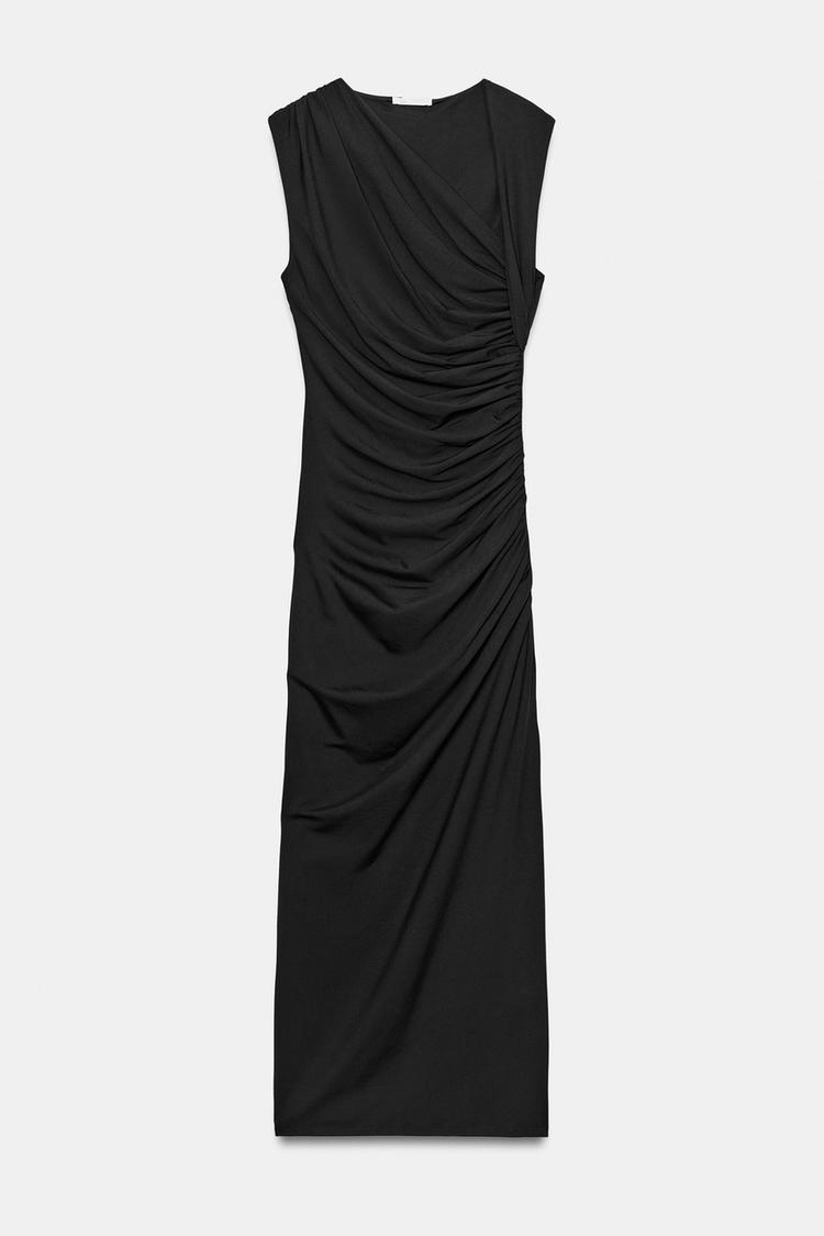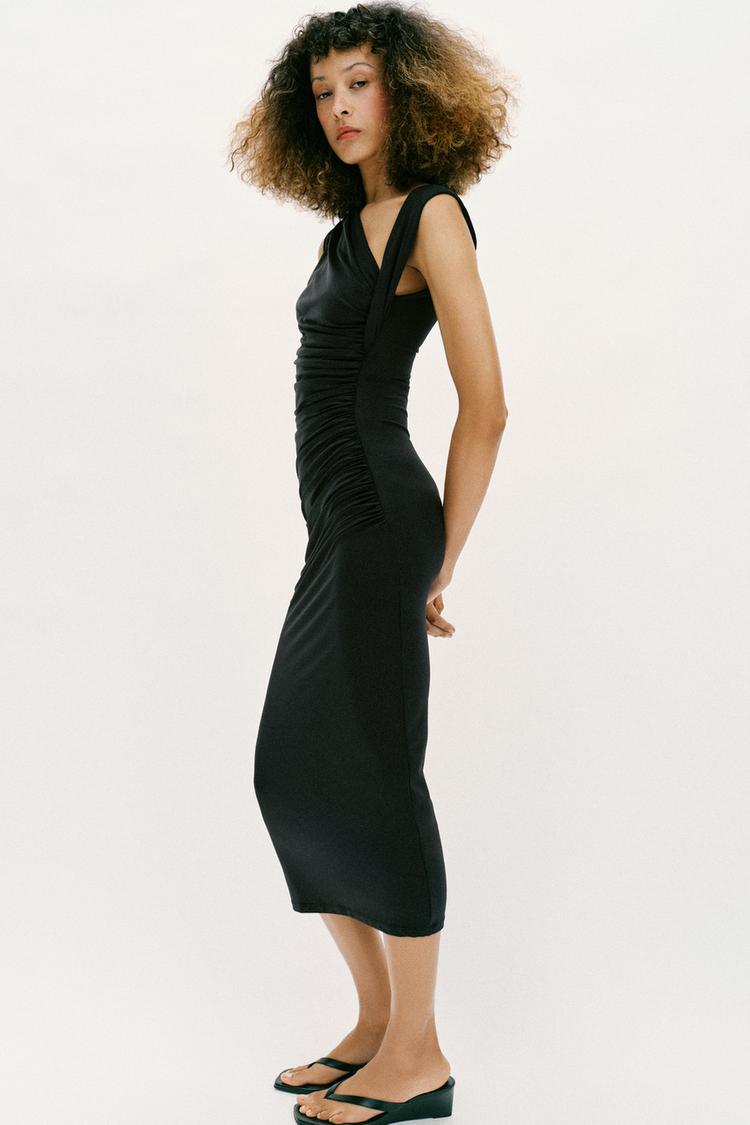 ZARA ПЛАТЬЕ МИДИ СО СБОРКАМИ, ЧЕРНЫЙ