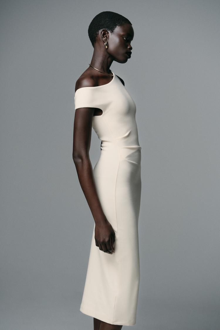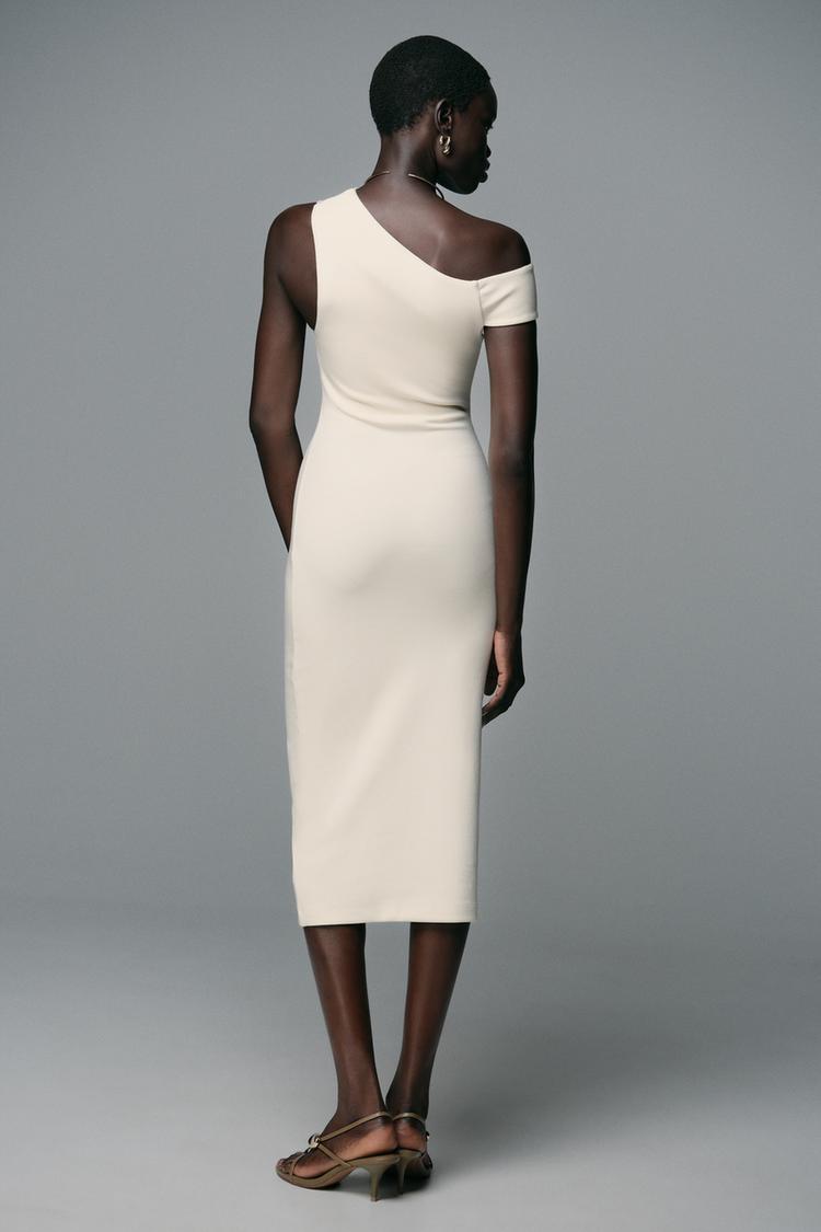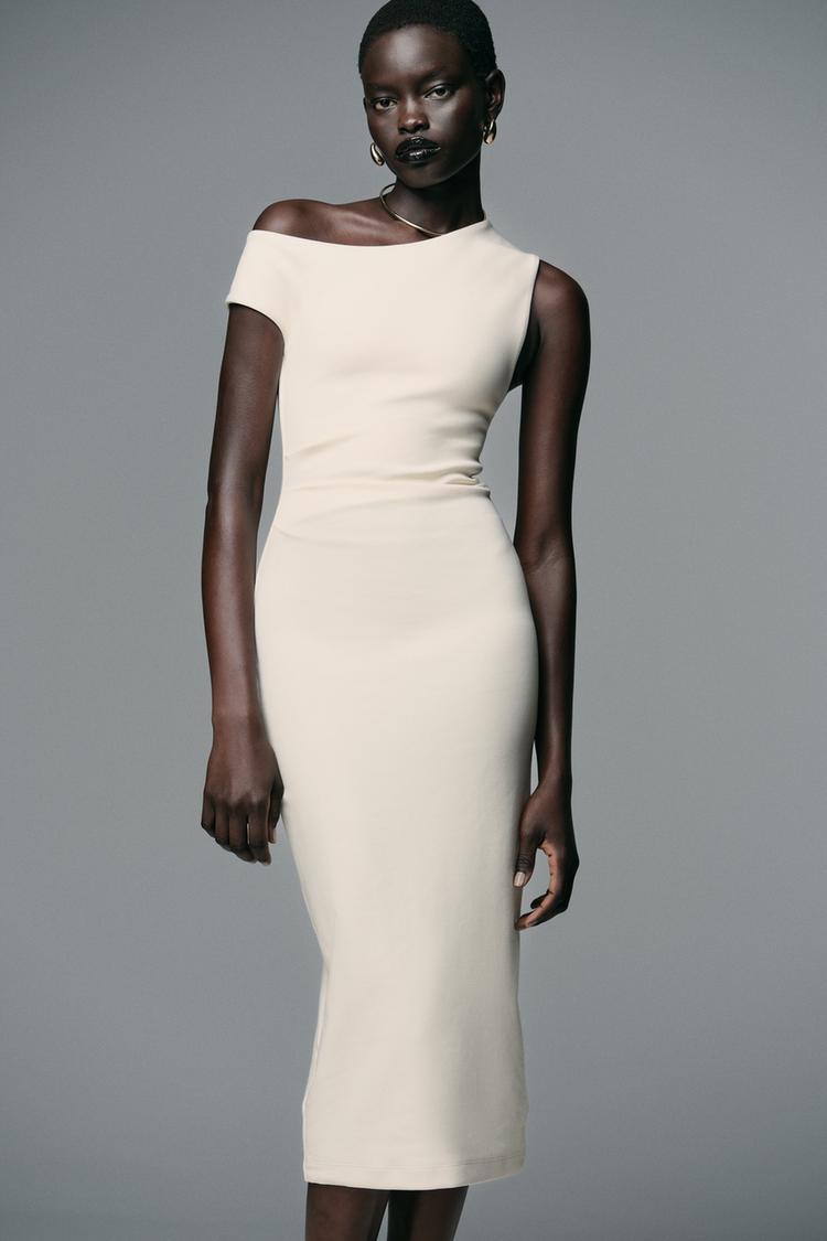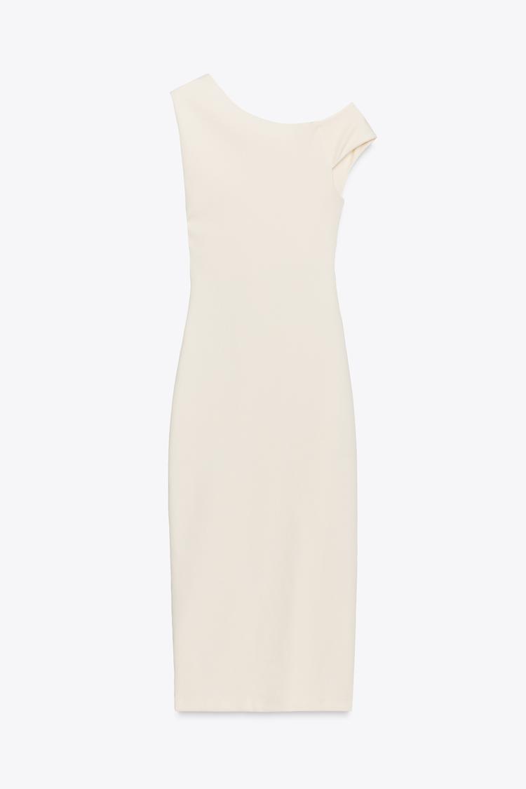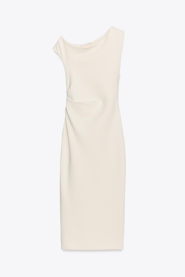 ZARA ПЛАТЬЕ МИДИ СО СБОРКАМИ, ЭКРЮ