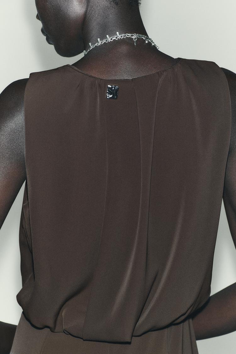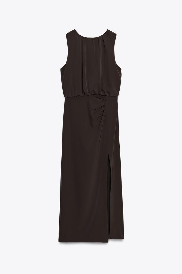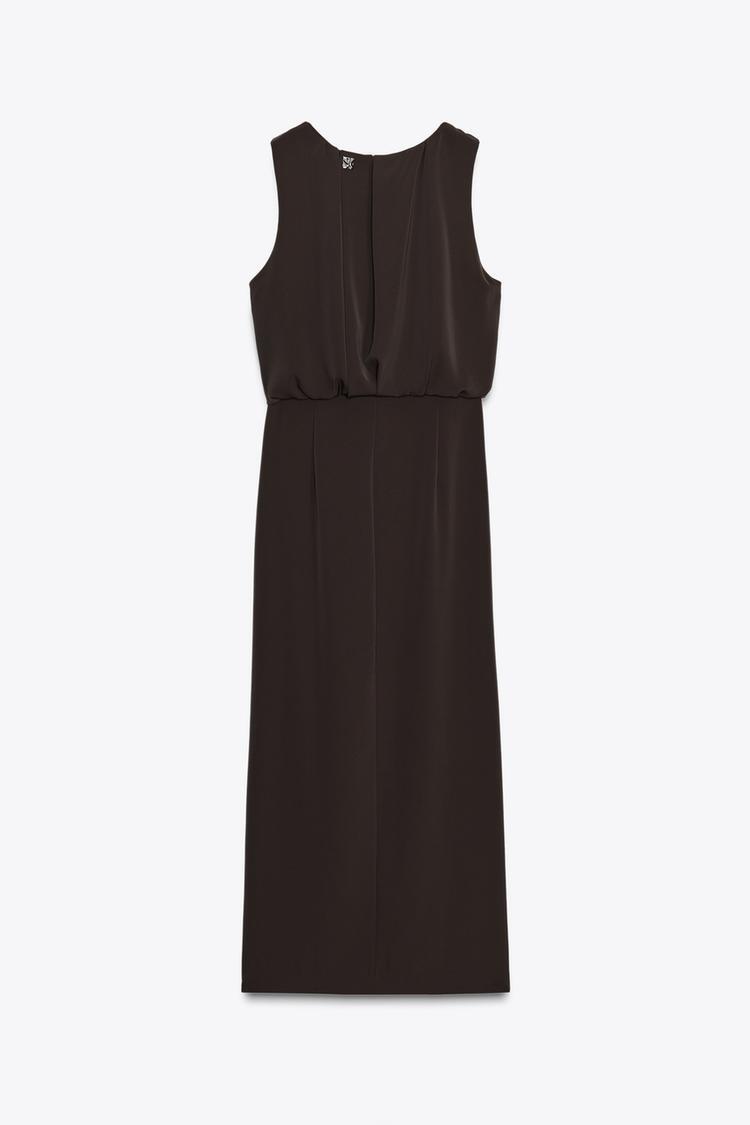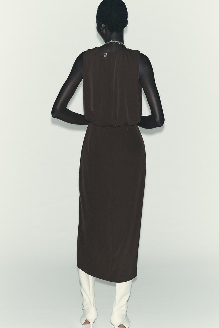 ZARA ПЛАТЬЕ МИДИ СО СБОРКАМИ НА ТАЛИИ, КОРИЧНЕВЫЙ