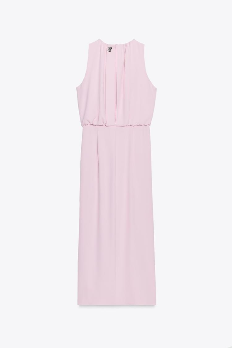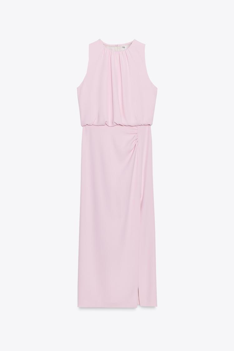 ZARA ПЛАТЬЕ МИДИ СО СБОРКАМИ НА ТАЛИИ, РОЗОВЫЙ