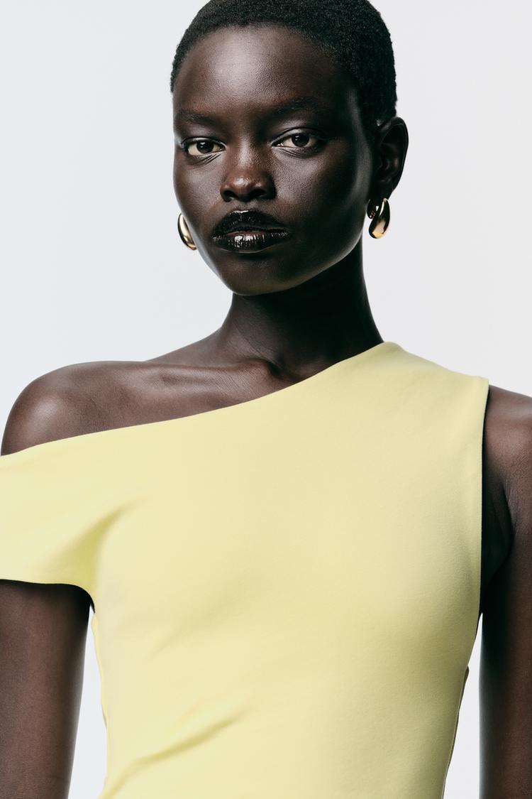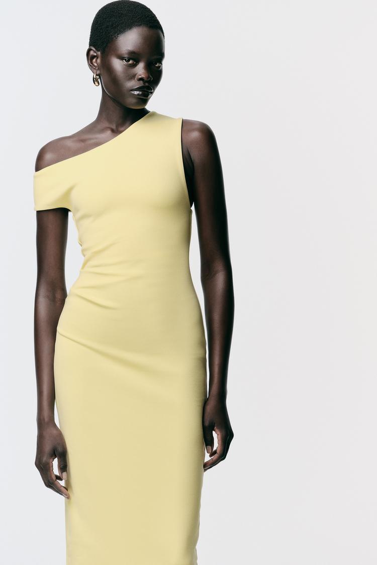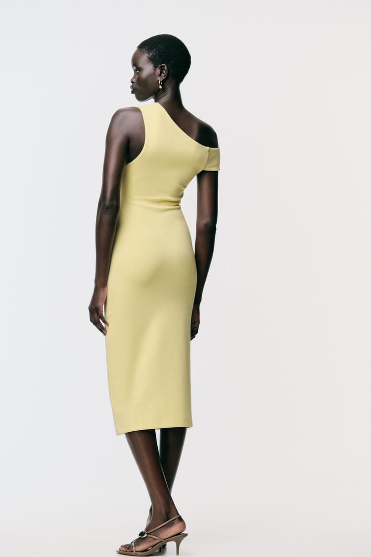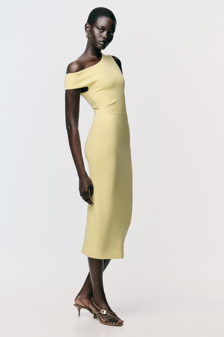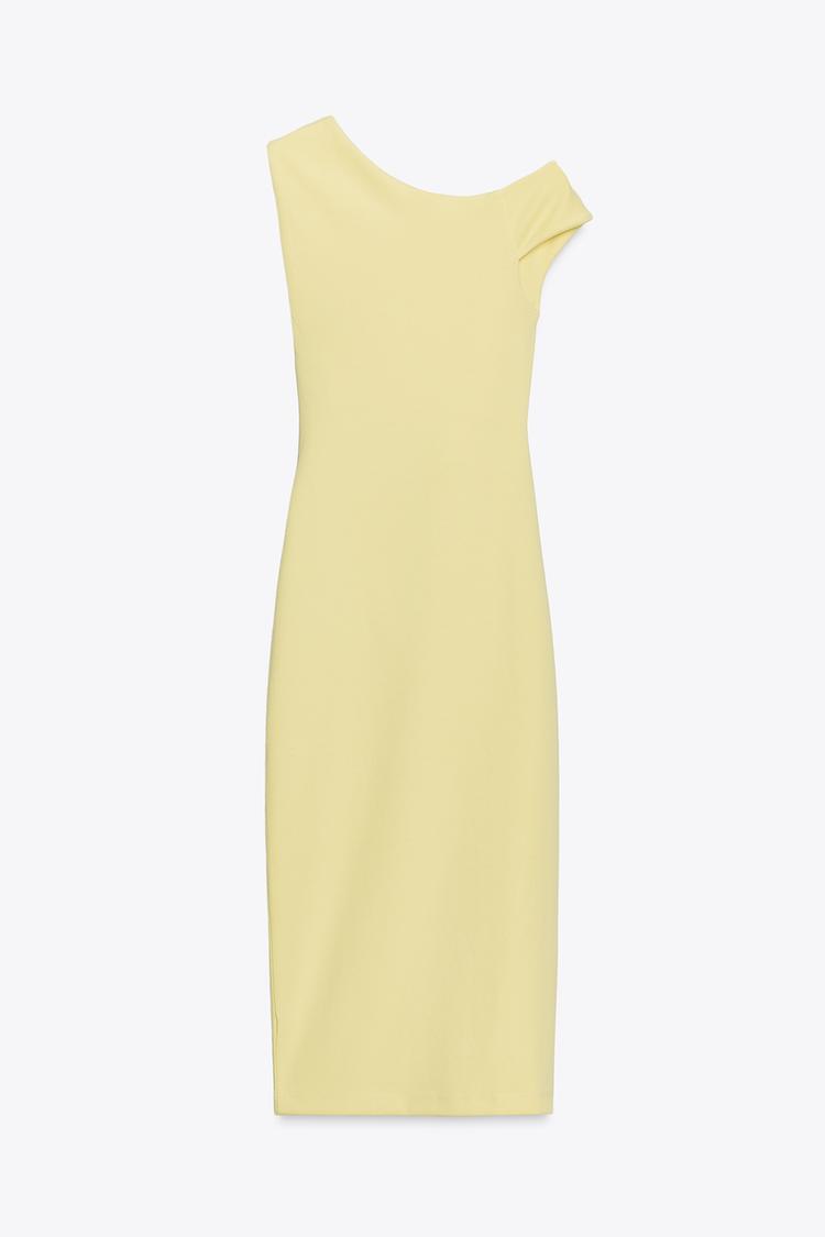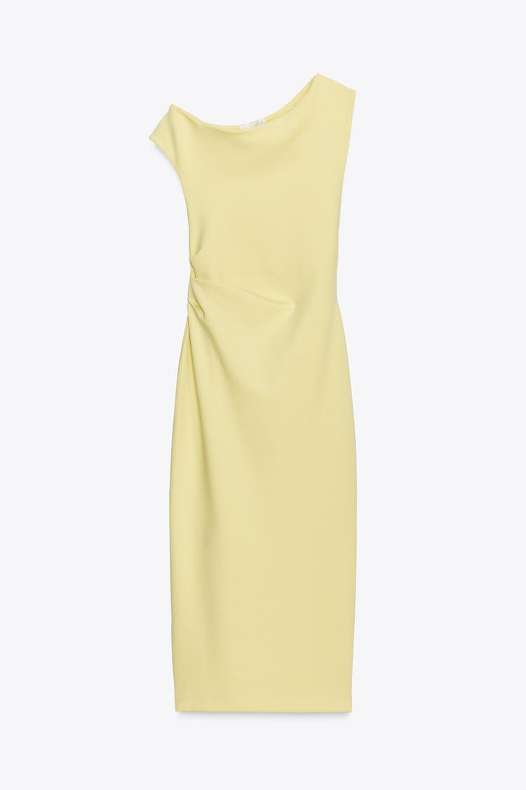 ZARA ПЛАТЬЕ МИДИ СО СБОРКАМИ, ЖЕЛТЫЙ