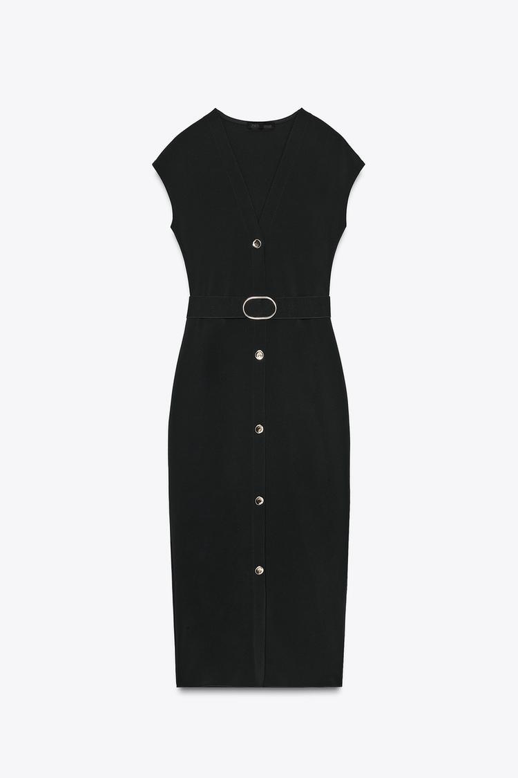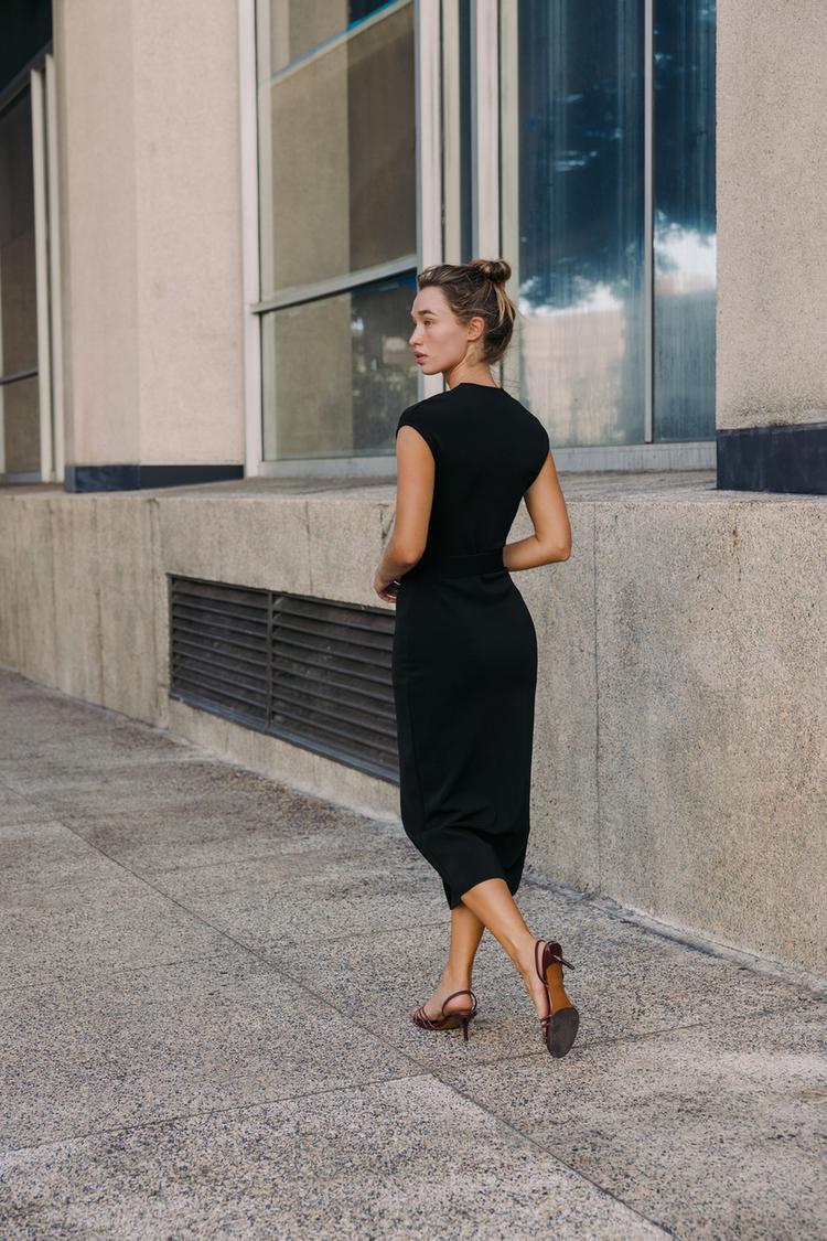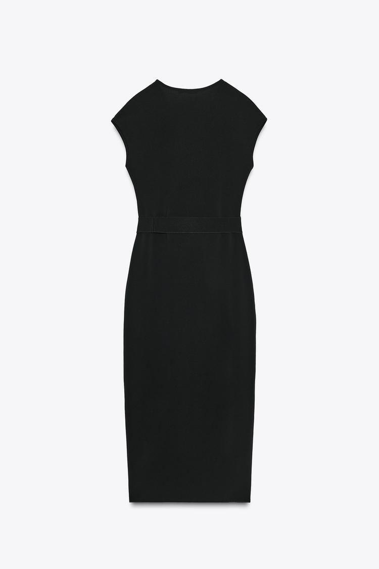 ZARA ПЛАТЬЕ МИДИ СТРЕЙЧ С ПОЯСОМ, ЧЕРНЫЙ