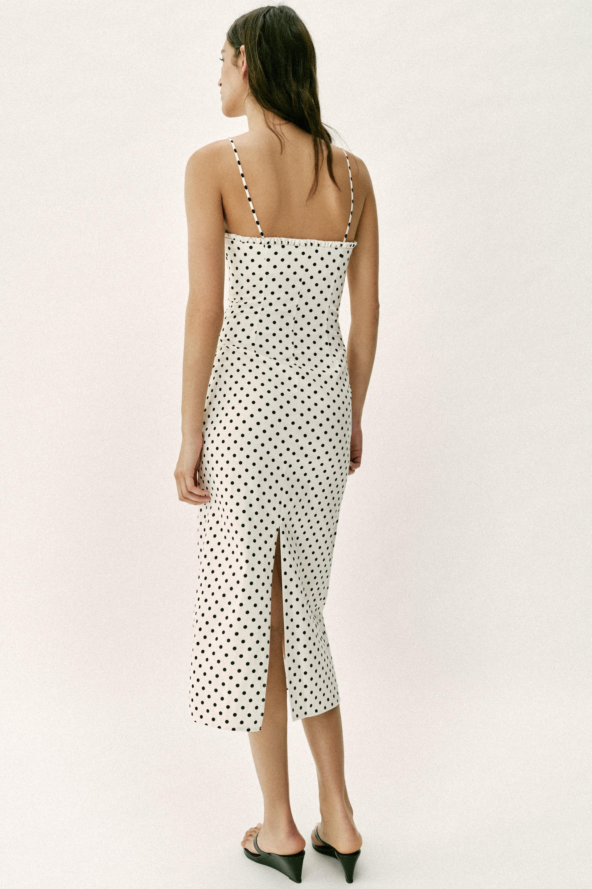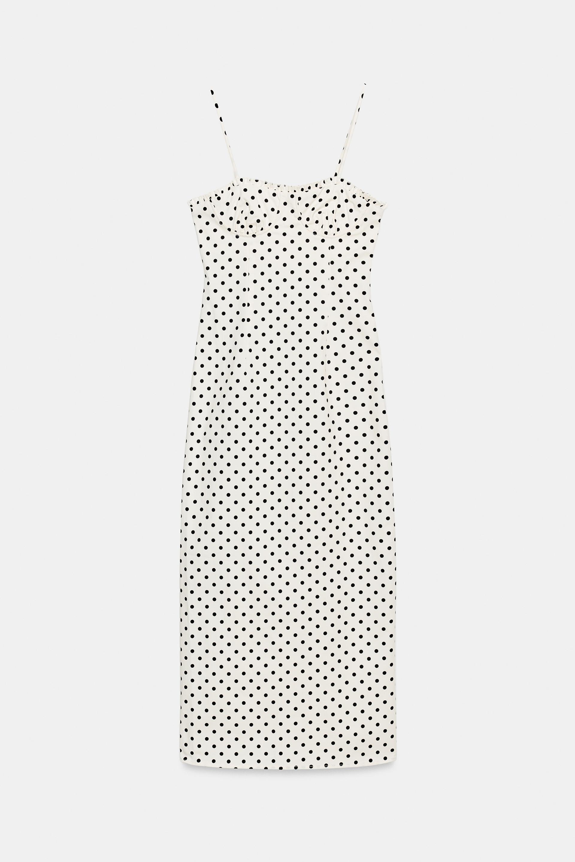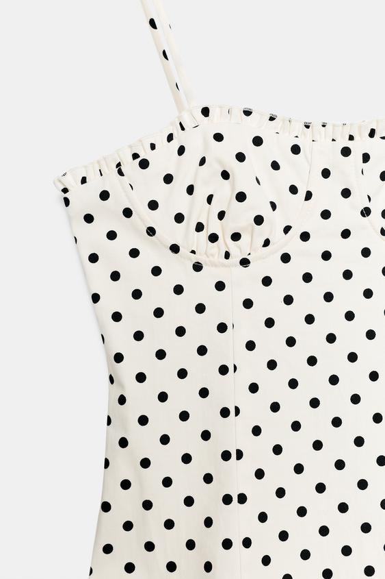 ZARA ПЛАТЬЕ МИДИ В ГОРОШЕК В КОРСЕТНОМ СТИЛЕ, БЕЛЫЙ/ЧЕРНЫЙ