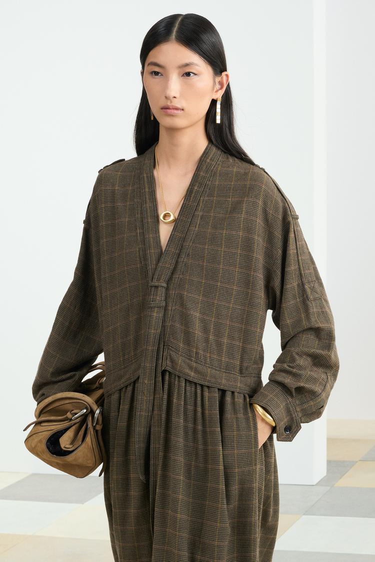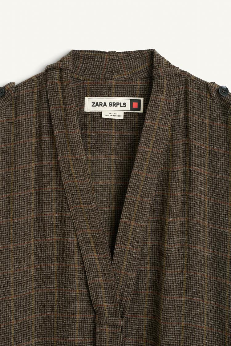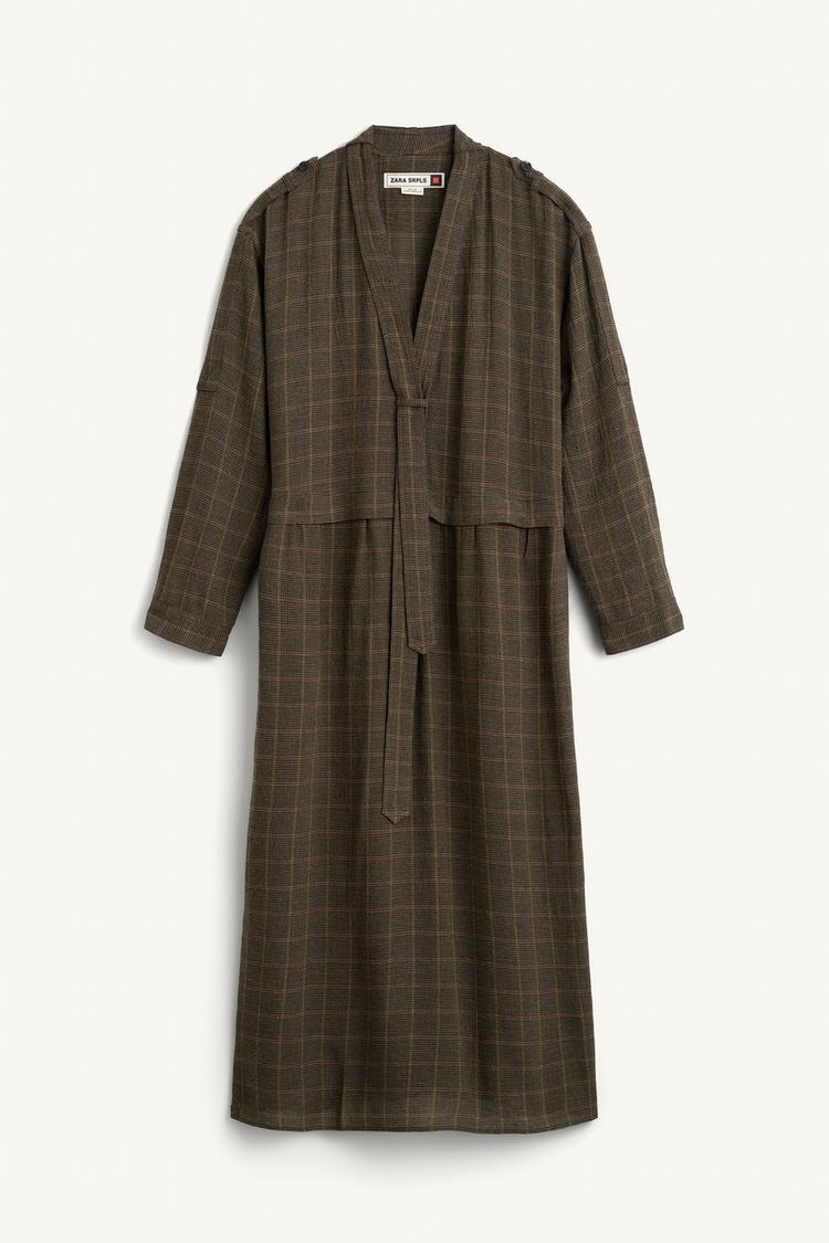 ZARA ПЛАТЬЕ МИДИ В КЛЕТКУ, КОРИЧНЕВЫЙ