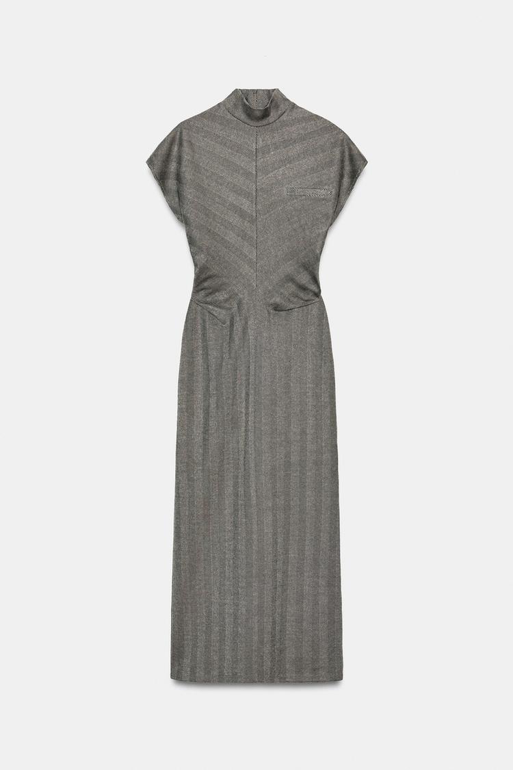 ZARA ПЛАТЬЕ МИДИ В ЁЛОЧКУ, СЕРЫЙ/БЕЖЕВЫЙ