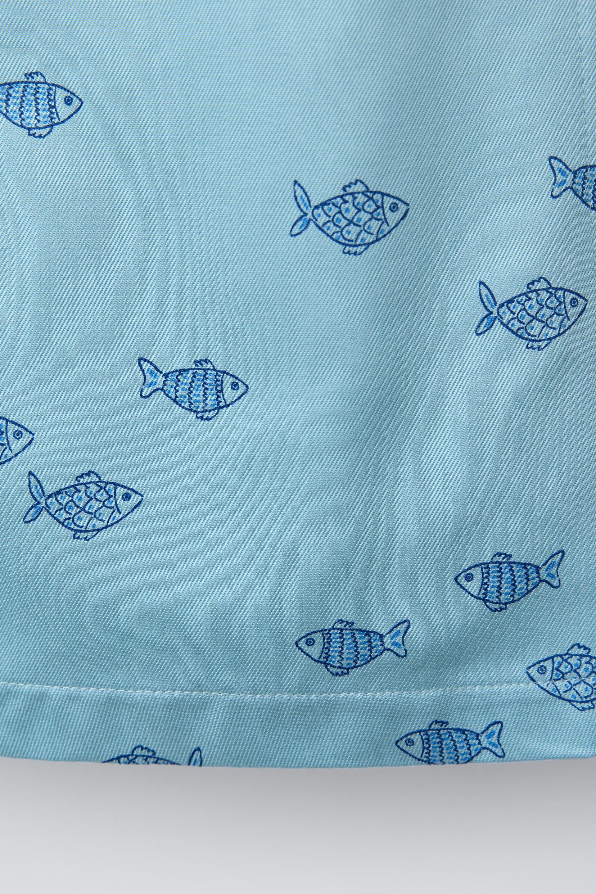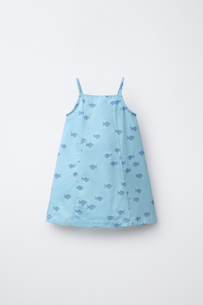 ZARA ПЛАТЬЕ НА БРЕТЕЛЯХ С ПРИНТОМ, СВЕТЛО-СИНИЙ