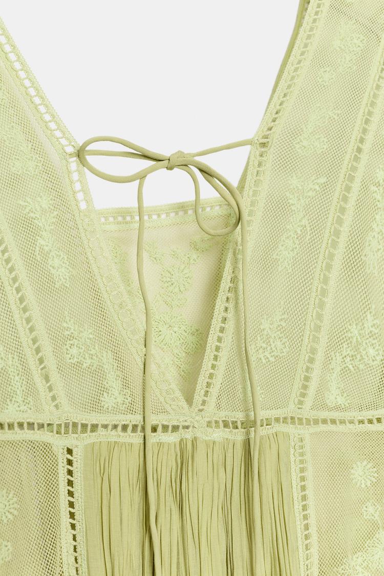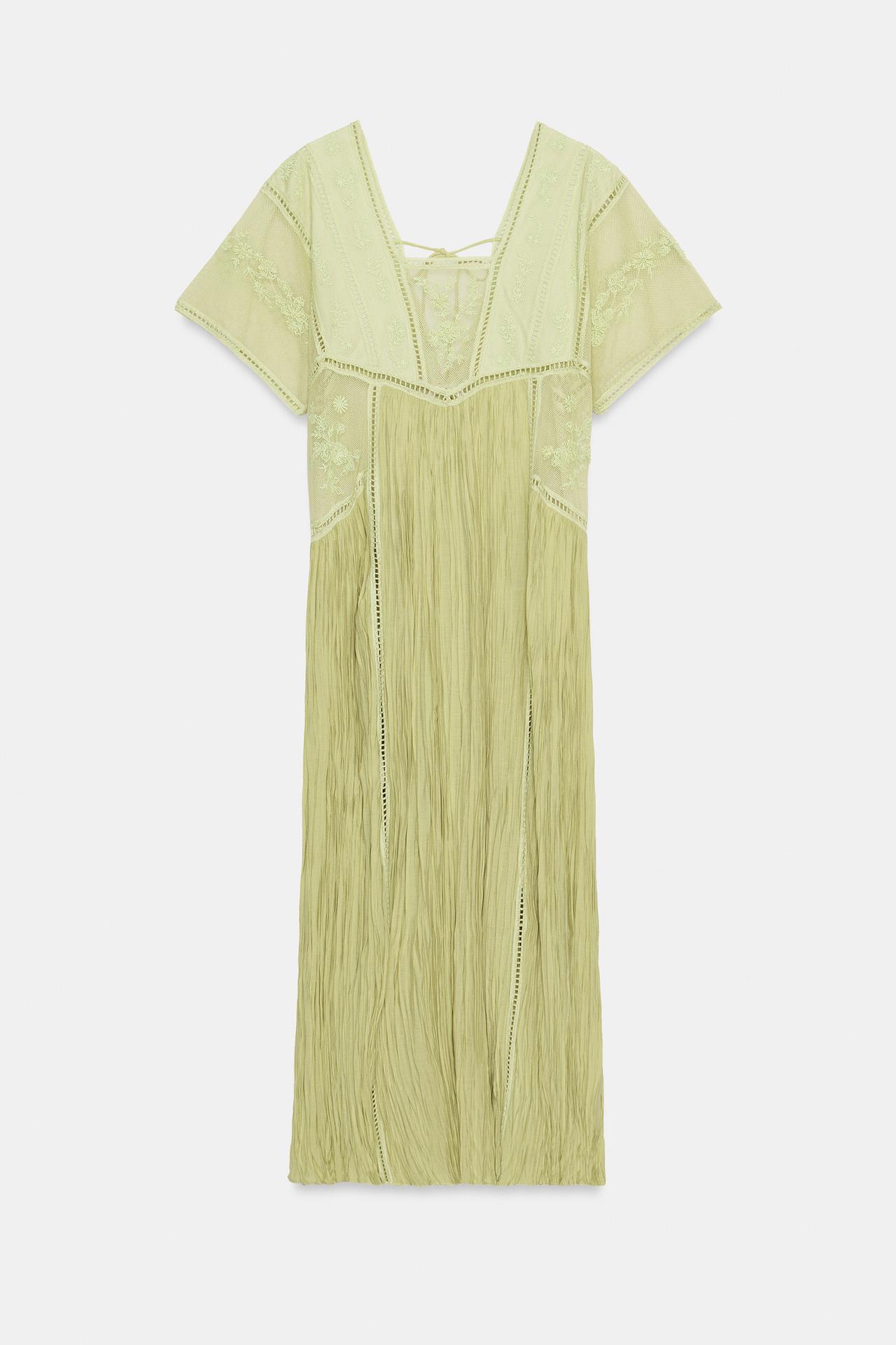 ZARA ПЛАТЬЕ ПЛИССЕ С ВЫШИВКОЙ — ZW COLLECTION, ФИСТАШКОВЫЙ