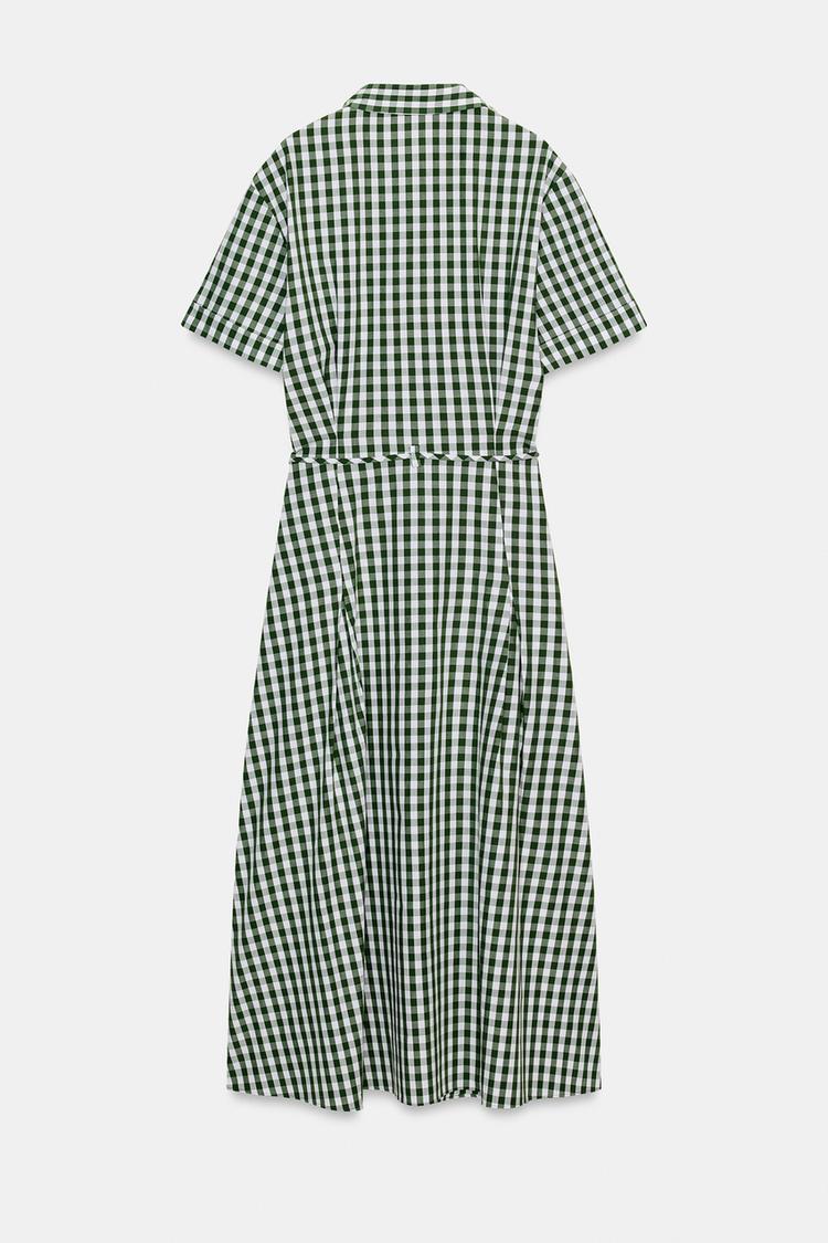 ZARA ПЛАТЬЕ-РУБАШКА МИДИ В КЛЕТКУ ВИШИ — ZW COLLECTION, ЗЕЛЕНЫЙ