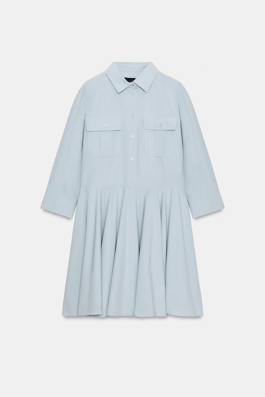 ZARA ПЛАТЬЕ-РУБАШКА ПЛИССЕ — ZW COLLECTION, ГОЛУБОЙ