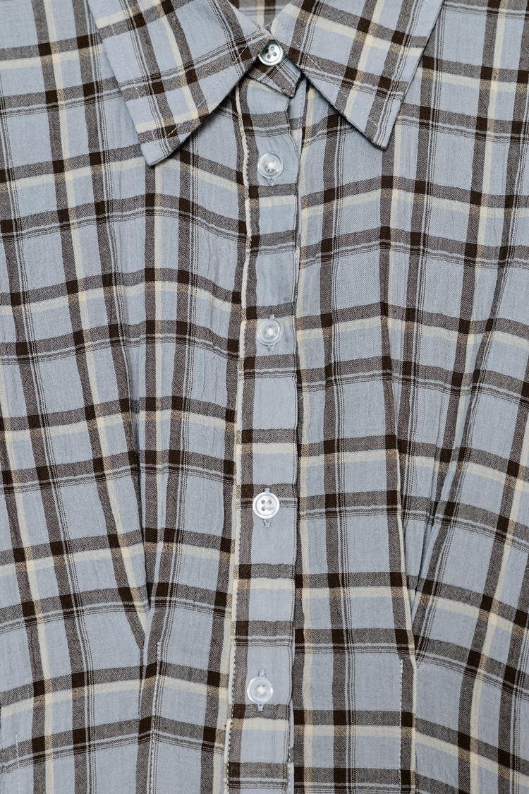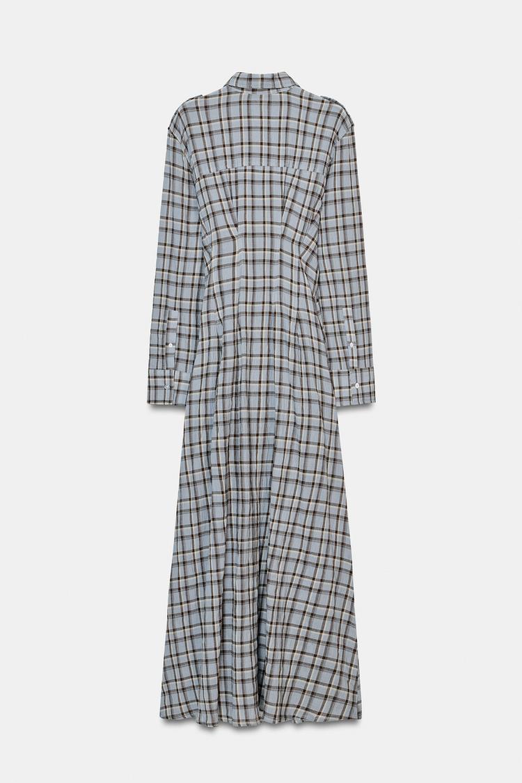 ZARA ПЛАТЬЕ-РУБАШКА В КЛЕТКУ, КОРИЧНЕВО-СИНИЙ