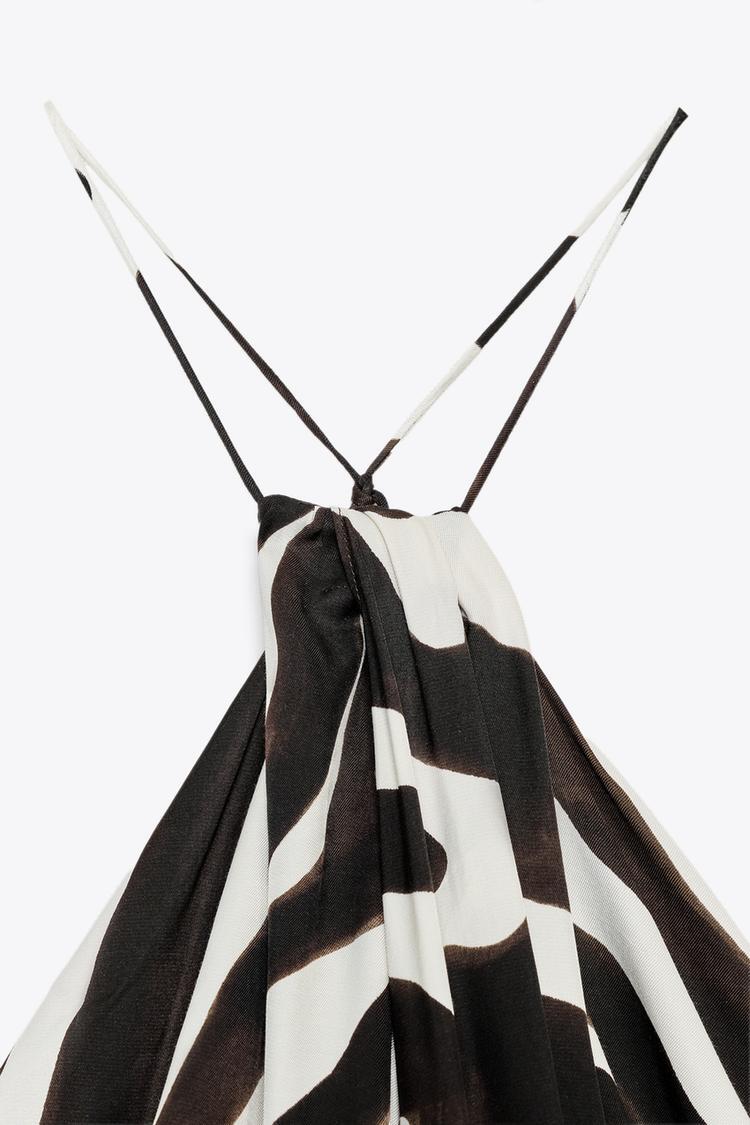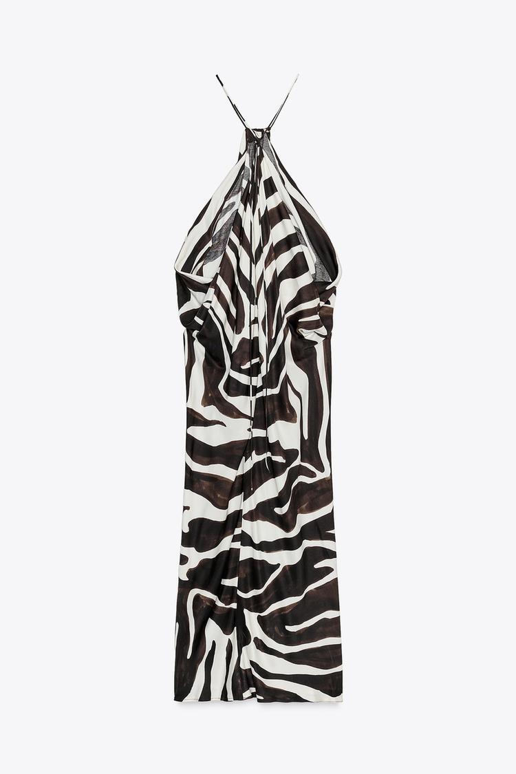 ZARA ПЛАТЬЕ С АНИМАЛИСТИЧЕСКИМ ПРИНТОМ И ГОРЛОВИНОЙ ХАЛТЕР — ZW COLLECTION, ЭКРЮ/ЧЕРНЫЙ