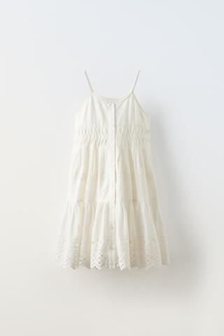 ZARA ПЛАТЬЕ С БРЕТЕЛЯМИ И ВЫШИВКОЙ, БЕЛЫЙ