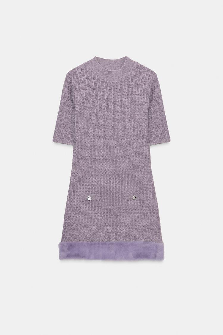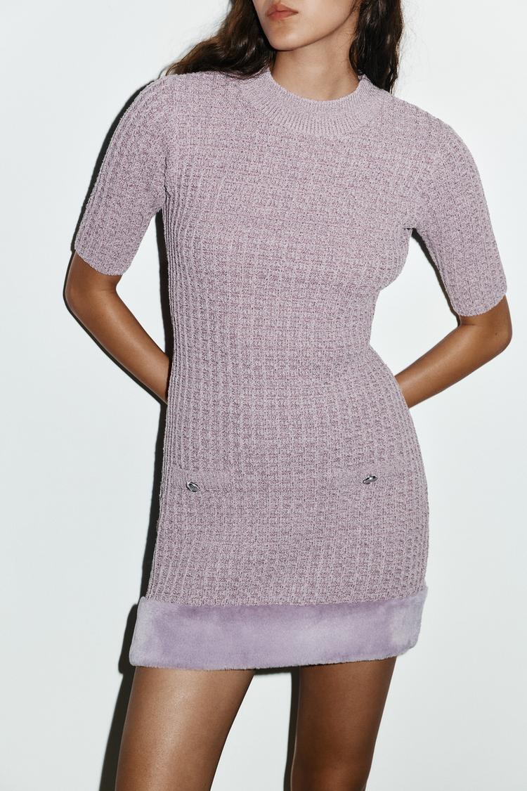 ZARA ПЛАТЬЕ С ФАКТУРНОЙ ОТДЕЛКОЙ И ЭФФЕКТОМ МЕХА, ЛИЛОВЫЙ