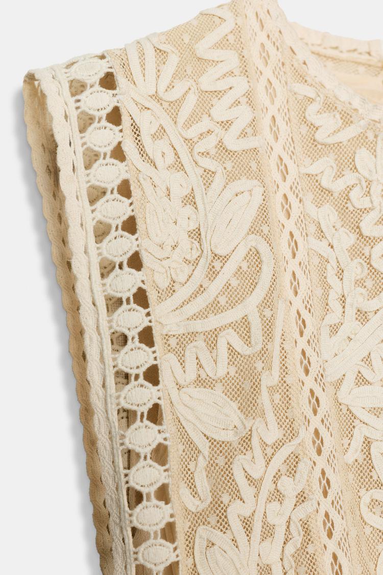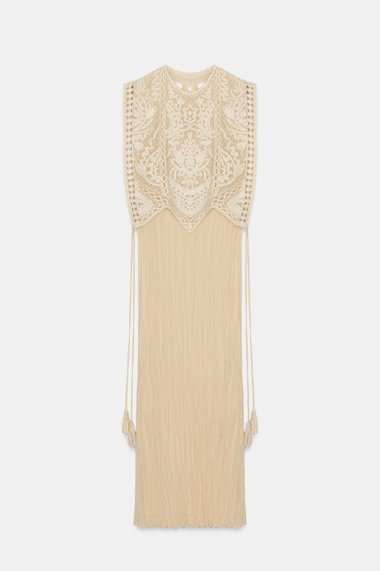 ZARA ПЛАТЬЕ С КОМБИНИРОВАННОЙ СЪЕМНОЙ НАКИДКОЙ — ZW COLLECTION, ЭКРЮ