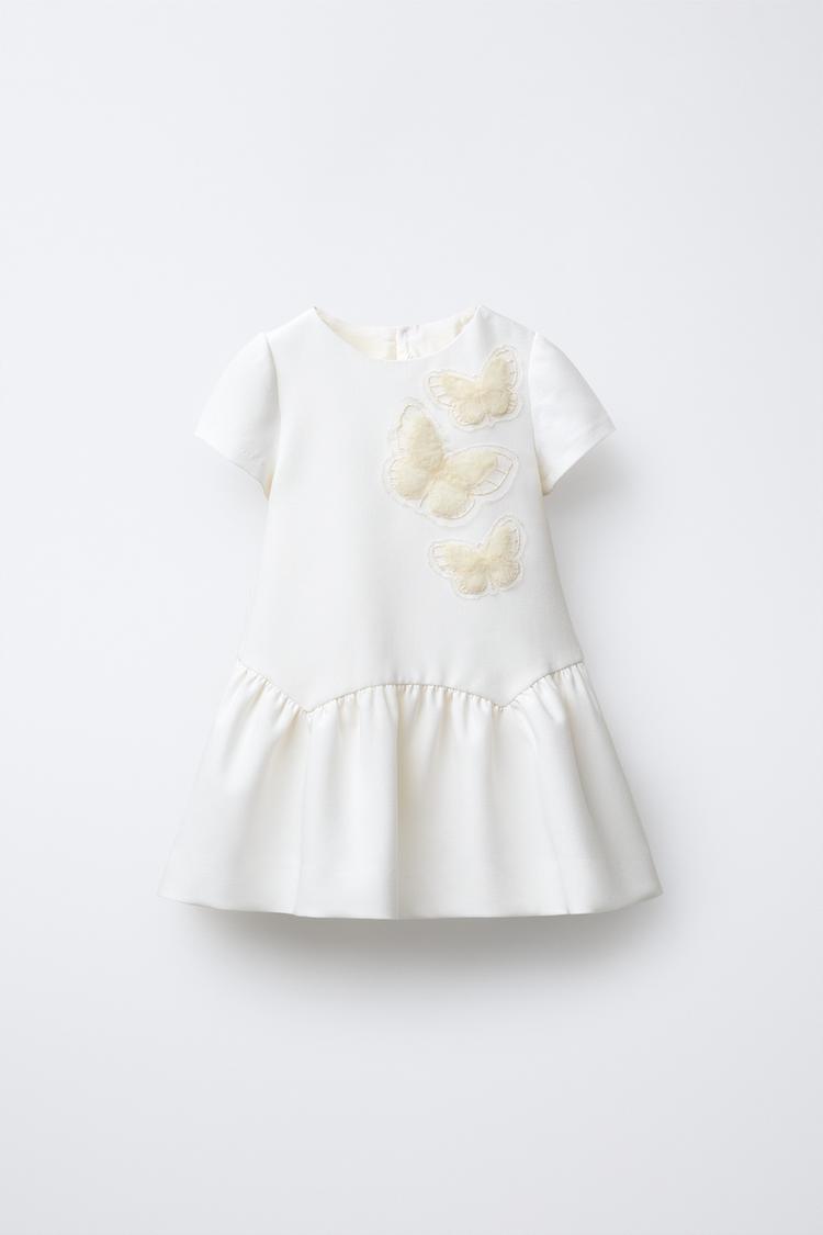 ZARA ПЛАТЬЕ С КОНТРАСТНОЙ ДЕТАЛЬЮ "БАБОЧКА", ЖЕЛТОВАТО-БЕЛЫЙ