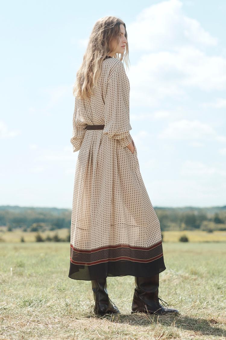 ZARA ПЛАТЬЕ С КОНТРАСТНЫМ ПРИНТОМ, РАЗНОЦВЕТНЫЙ