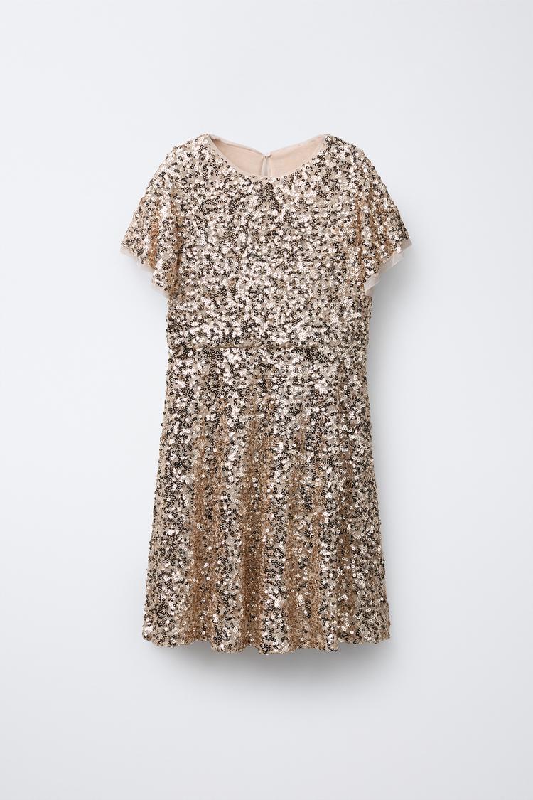 ZARA ПЛАТЬЕ С ПАЙЕТКАМИ, ЗОЛОТИСТЫЙ