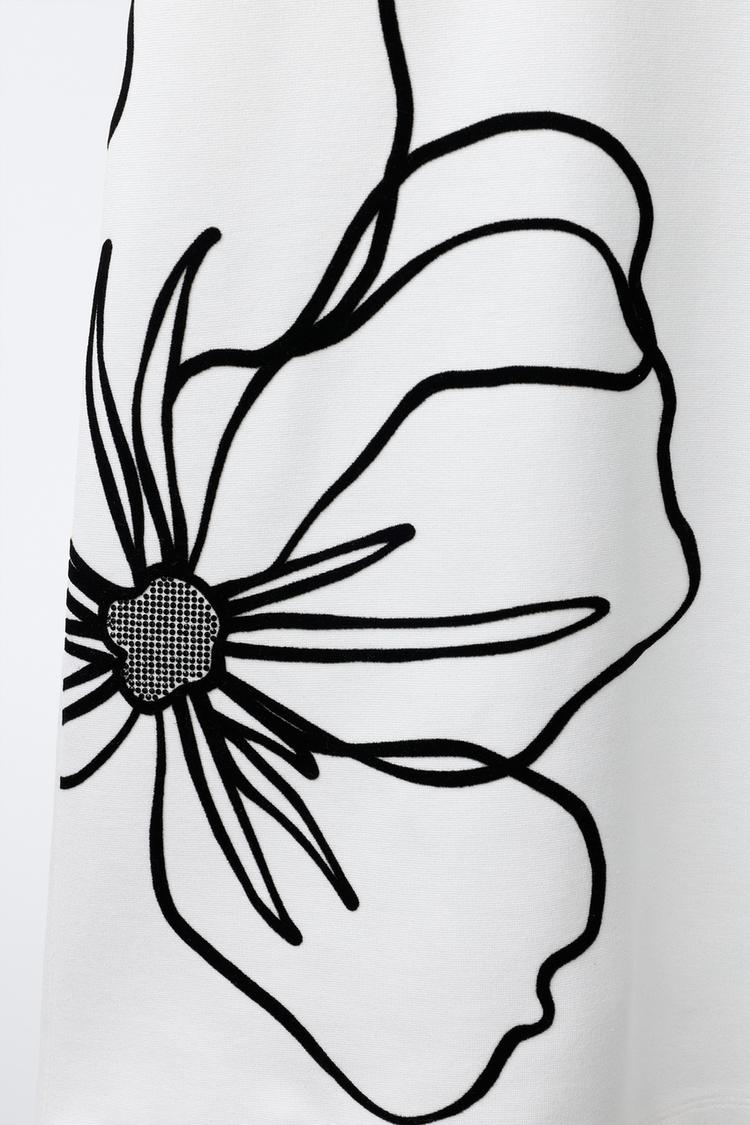 Платье с круглым вырезом горловины, короткими рукавами, украшенное флокированными цветочными деталями и с пуговицами на спине и вырезом в форме капли.