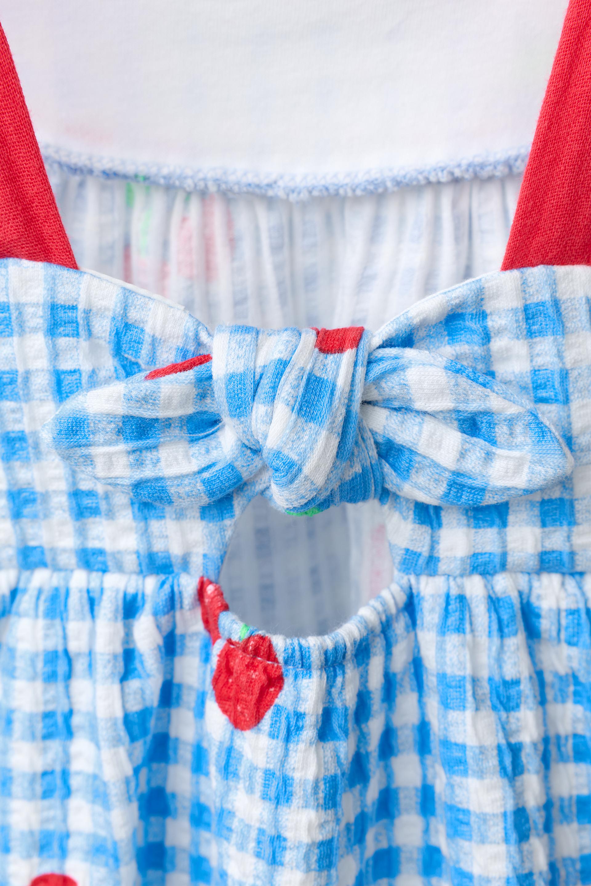 Платье с круглым вырезом и бретелями. Сплошной принт.