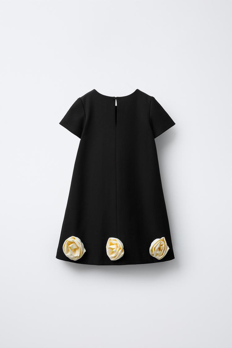 ZARA ПЛАТЬЕ С ЦВЕТАМИ 3D И КОНТРАСТНОЙ ОТДЕЛКОЙ, ЧЕРНЫЙ