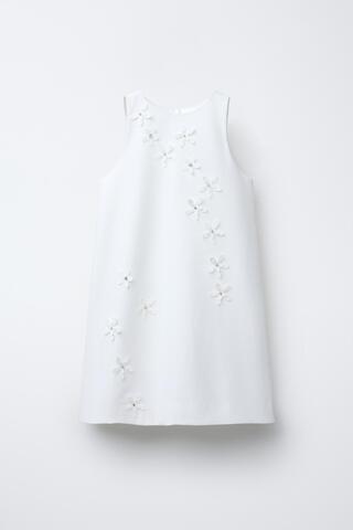 ZARA ПЛАТЬЕ С ЦВЕТОЧКАМИ, БЕЛЫЙ