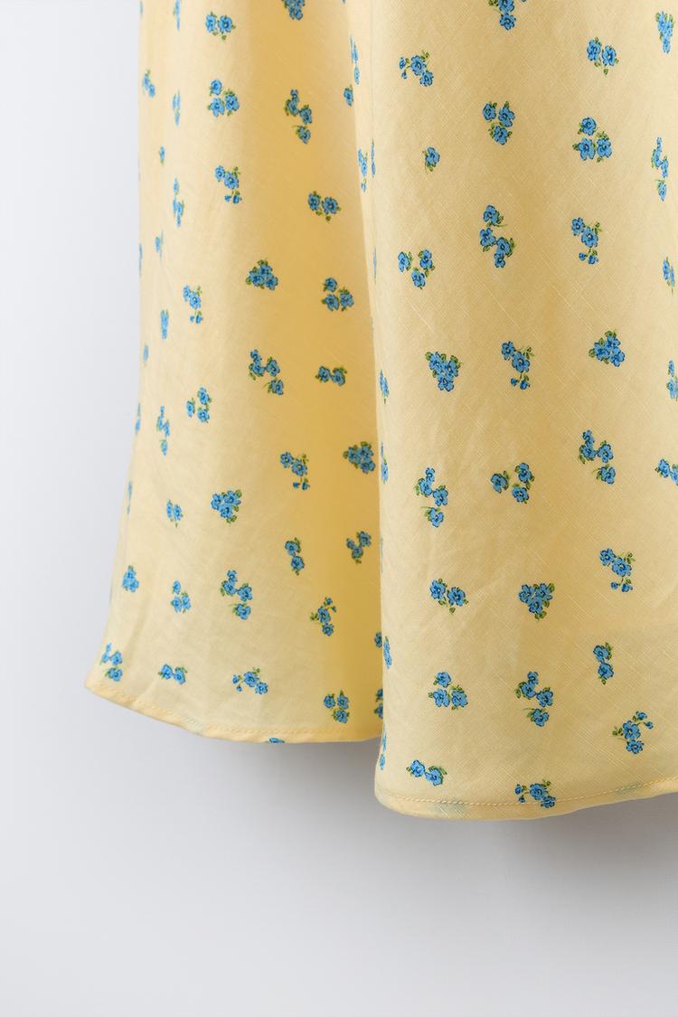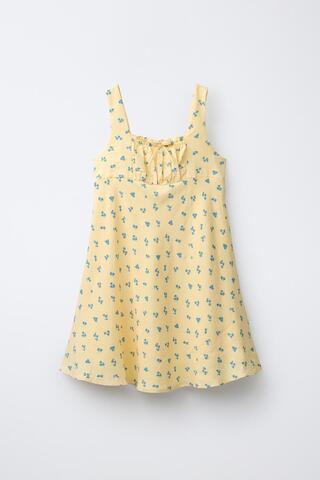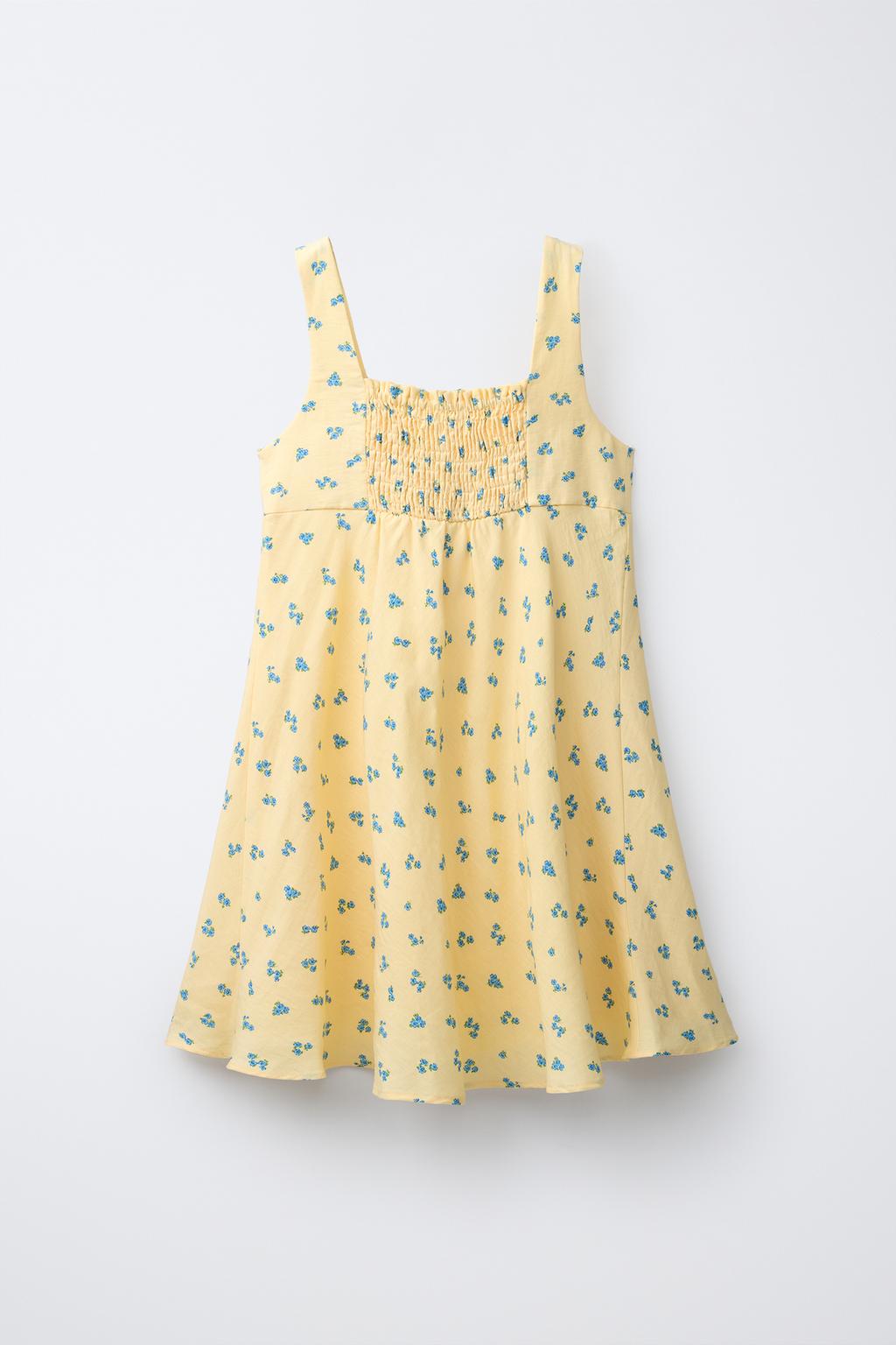 ZARA ПЛАТЬЕ С ЦВЕТОЧНЫМ ПРИНТОМ И РЮШАМИ, ПАСТЕЛЬНО-ЖЕЛТЫЙ