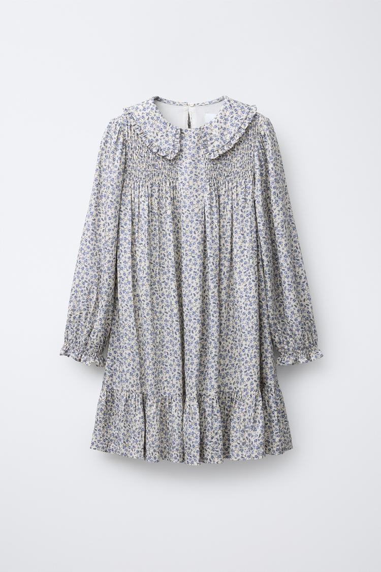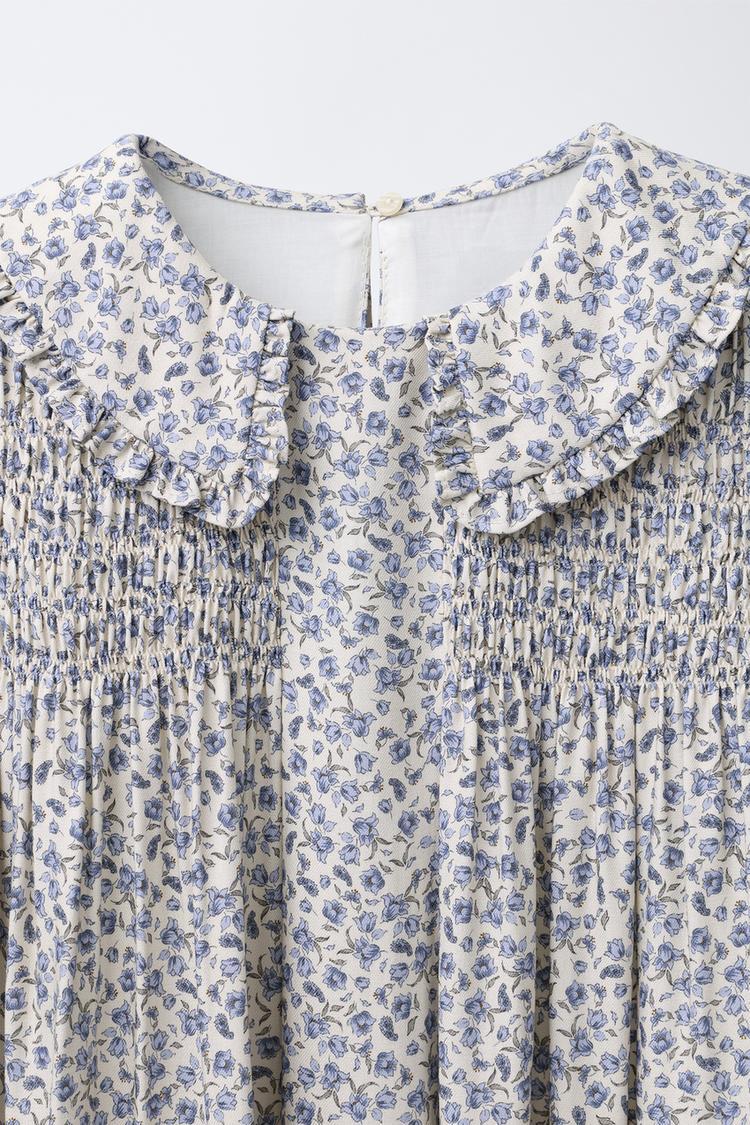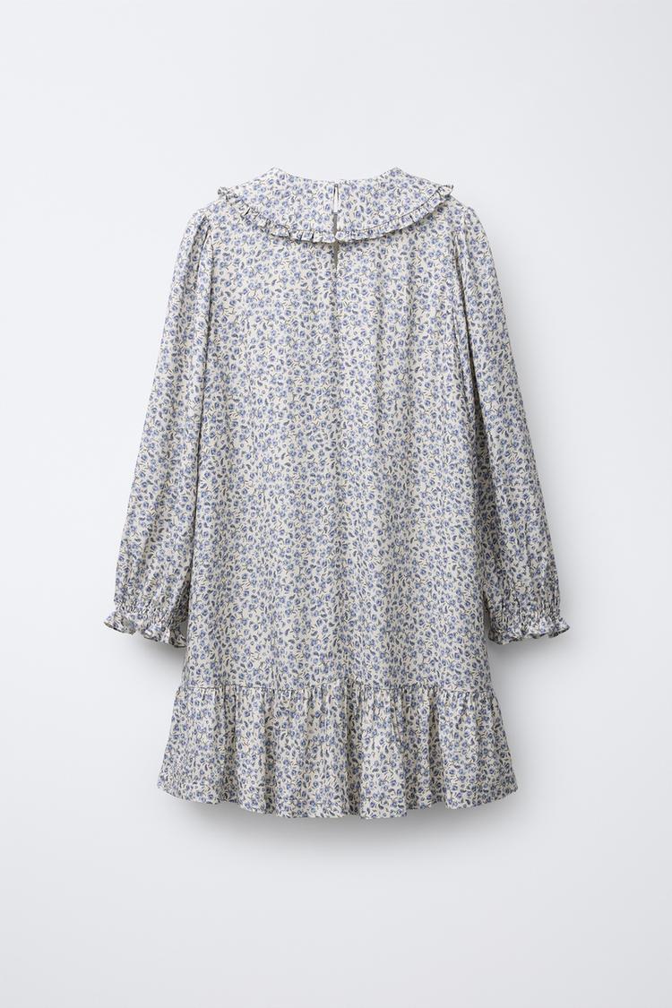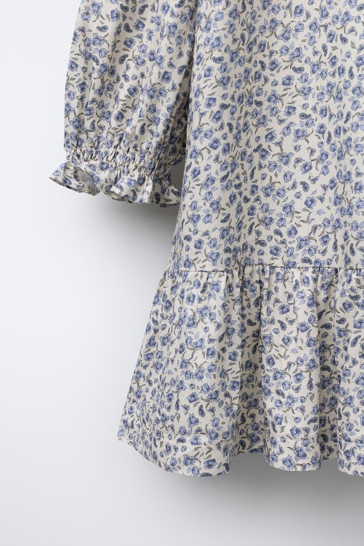 ZARA ПЛАТЬЕ С ЦВЕТОЧНЫМ ПРИНТОМ И ВОЛАНАМИ, ЭКРЮ