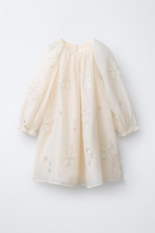 ZARA ПЛАТЬЕ С ЦВЕТОЧНЫМ УЗОРОМ, ЭКРЮ