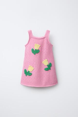 ZARA ПЛАТЬЕ С ТЮЛЬПАНАМИ КРОШЕ, РОЗОВЫЙ