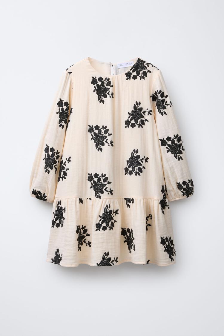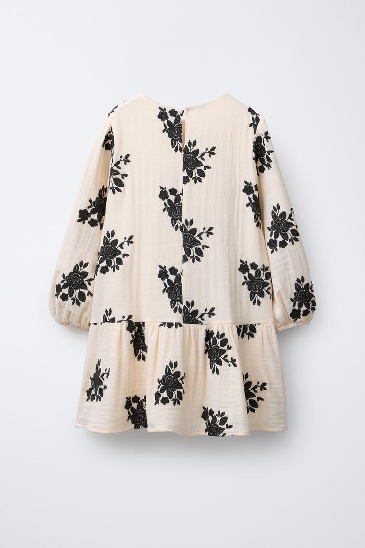 ZARA ПЛАТЬЕ С ВЫШИТЫМИ ЦВЕТАМИ, ЭКРЮ