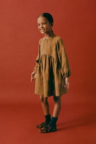 ZARA ПЛАТЬЕ С ВЫШИТЫМИ ЦВЕТАМИ, ХАКИ