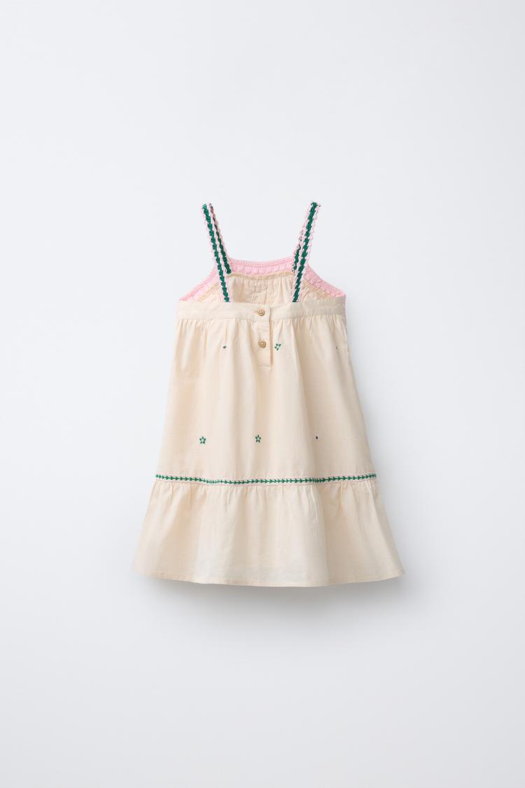 ZARA ПЛАТЬЕ С ВЫШИВКОЙ И ЦВЕТОЧНЫМ ПРИНТОМ, ЭКРЮ