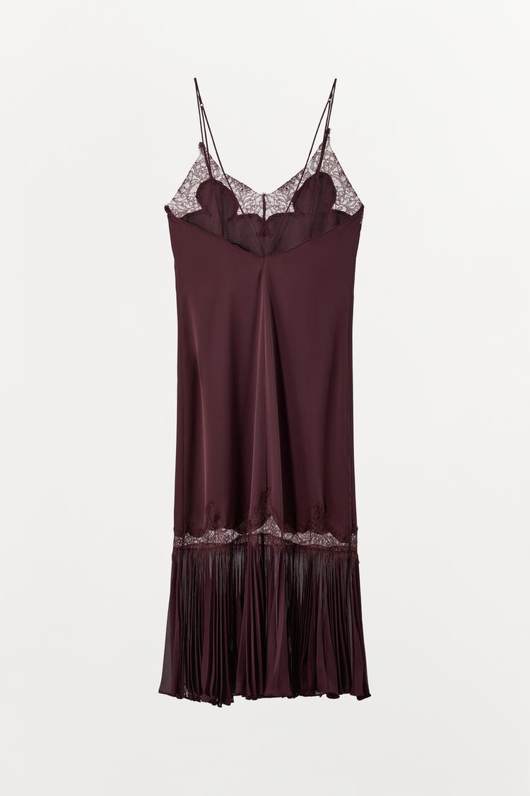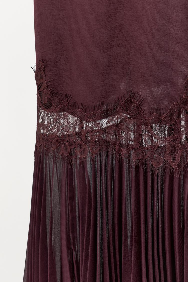 ZARA ПЛАТЬЕ СО СКЛАДКАМИ И КРУЖЕВОМ, ГРАНАТОВЫЙ