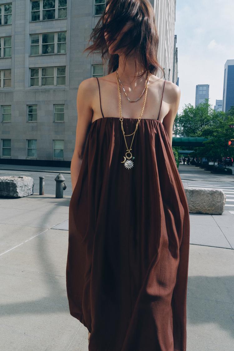 ZARA ПЛАТЬЕ-ТРАНСФОРМЕР С ЮБКОЙ-БАЛЛОНОМ — ZW COLLECTION, ТЕРРАКОТОВЫЙ