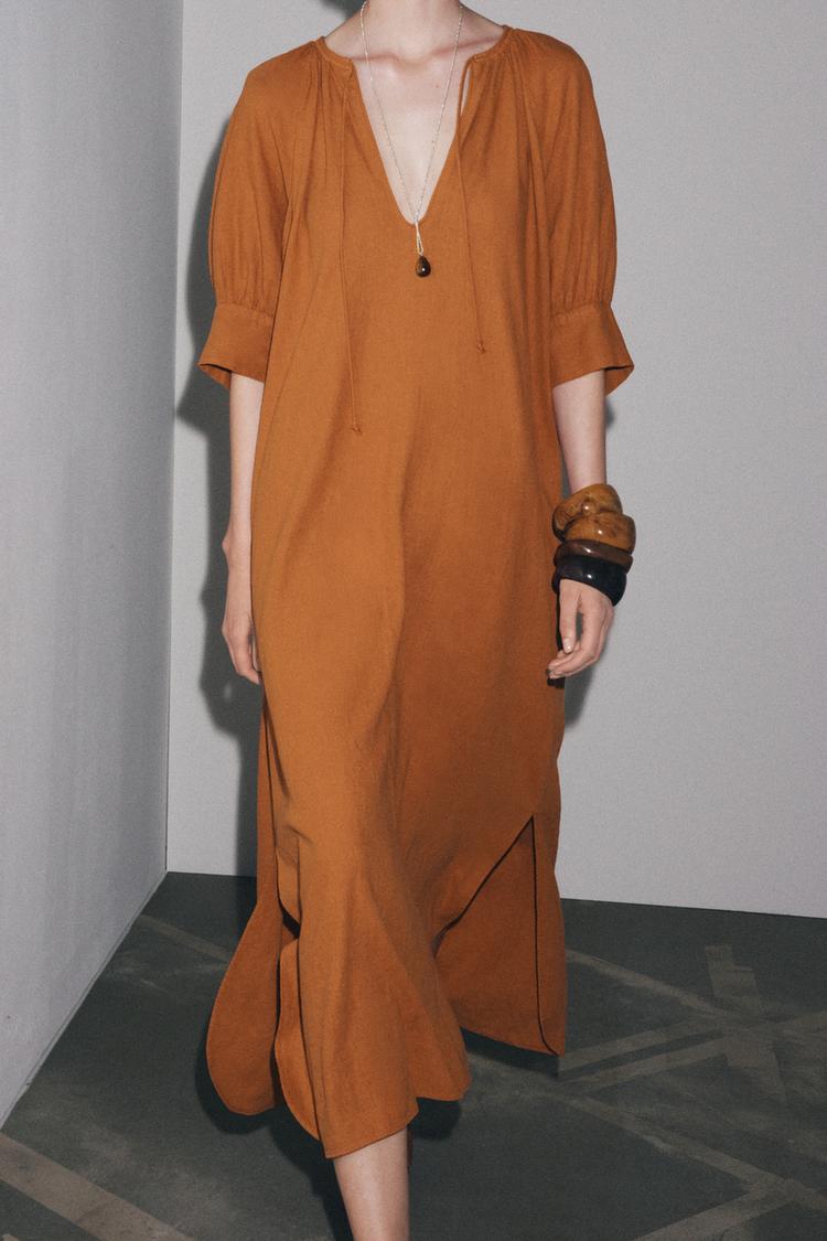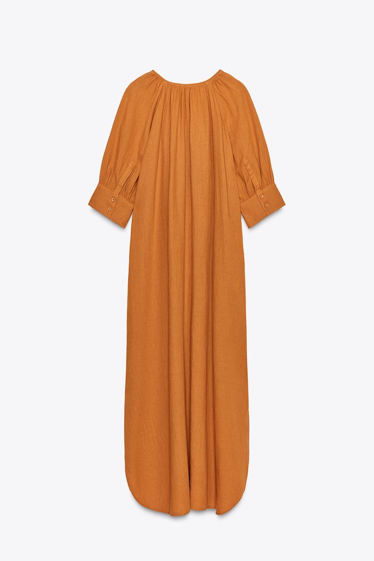 ZARA ПЛАТЬЕ-ТУНИКА ИЗ ЛЬНА ZW COLLECTION, СВЕТЛО-КОРИЧНЕВЫЙ